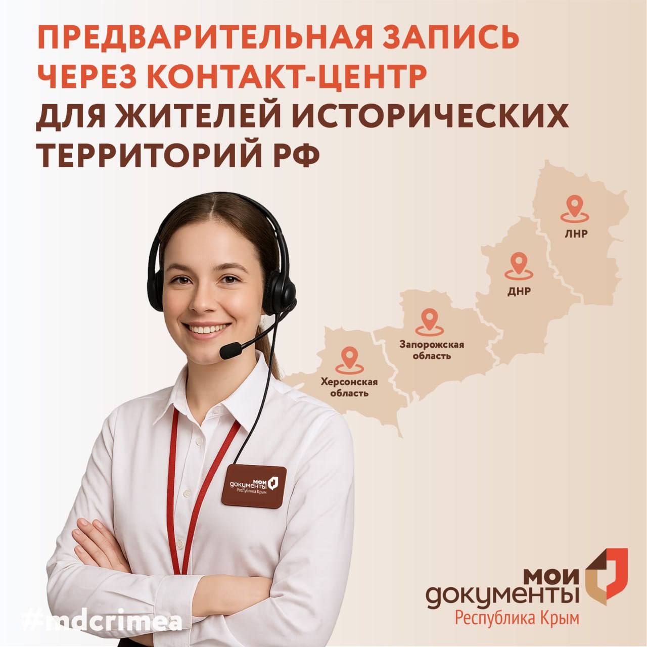 Для комфорта граждан, имеющих недвижимое имущество на территории ДНР, ЛНР, Запорожской и Херсонской областей, со 2 октября реализована возможность получения талона предварительной записи на услугу Регистрация права на недвижимое имущество, расположенное на территории указанных областей, по телефонным номерам контакт-центра ГБУ РК «МФЦ»: