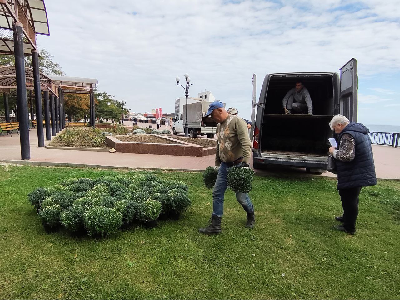 Как рассказала начальник отдела благоустройства и озеленения Алла Хапицкая, сейчас проводится высадка первой партии многолетних растений - тысячи хризантем. Они украсят осенние клумбы города на въездной группе Феодосии, городской набережной. В ближайшие дни их высадка будет проведена в сквере у мемориала Вечный огонь, в сквере у памятного знака космонавтам.