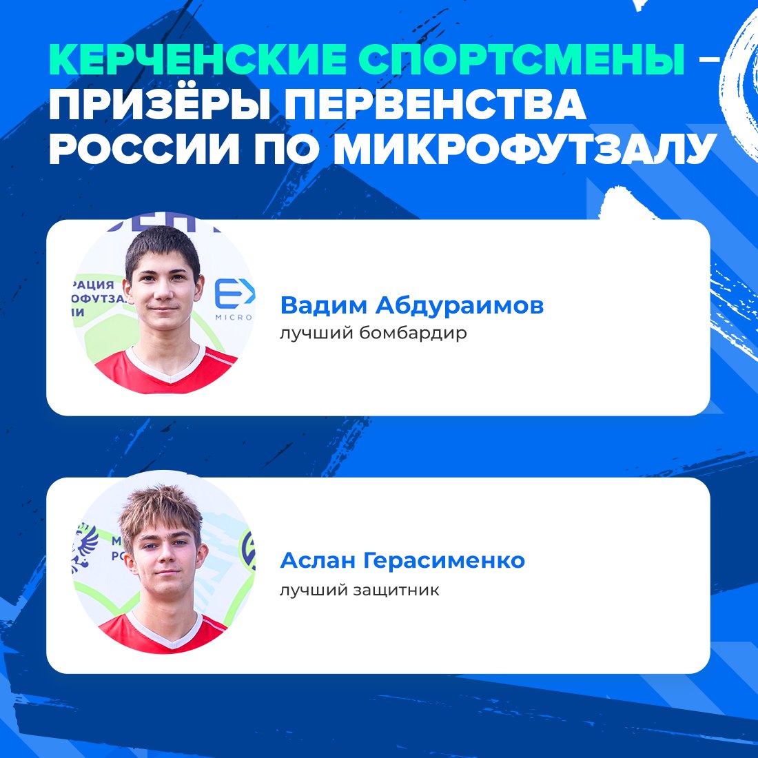На первенстве России по микрофутзалу крымская сборная завоевала серебряные медали. В её составе наши спортсмены 2009 и 2010 годов рождения: Егор Киричек, Александр Остапчук, Вадим Абдураимов и Аслан Герасименко. Более того, Вадим и Аслан были признаны лучшими футболистами соревнований!