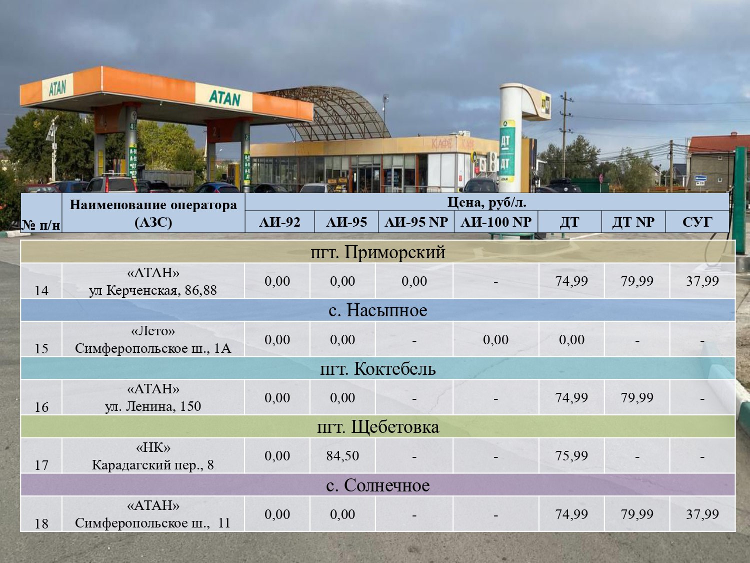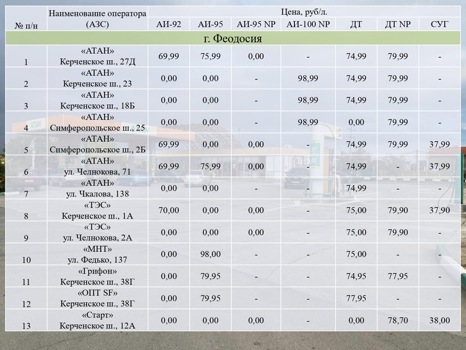 Информация о наличии и стоимости бензина на заправках Феодосийского округа