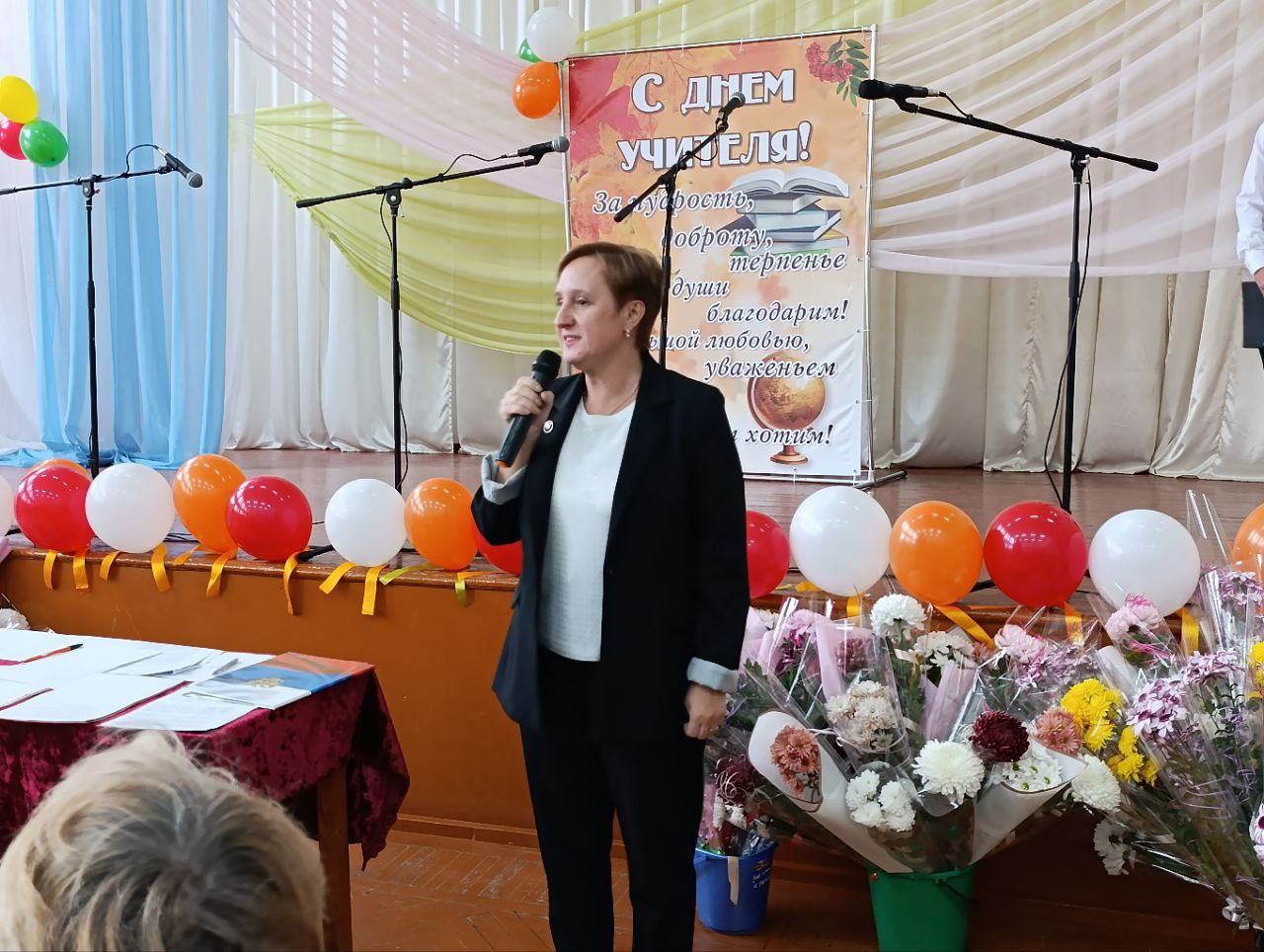 Тёплые слова поздравления коллективу школы передала мой первый заместитель Жанна Хмур. Она поблагодарила педагогов за профессионализм и преданность делу, пожелала дальнейших успехов в обучении и воспитании подрастающего поколения.