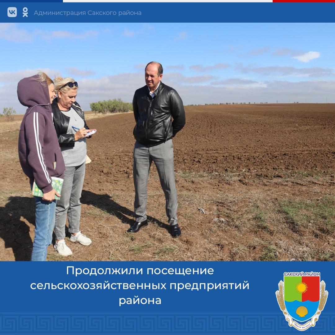 Глава администрации Сакского района Владислав Хаджиев и заместитель начальника управления по экономическому развитию, аграрной и инвестиционной политики Наталья Федченко продолжили посещение сельскохозяйственных предприятий Сакского района.