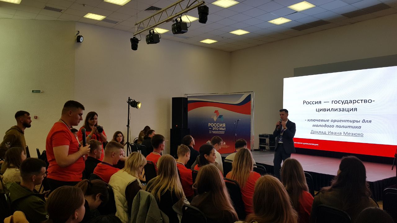 Иван Мезюхо выступил с докладом на тему: «Россия — государство-цивилизация: ключевые ориентиры для молодого политика».