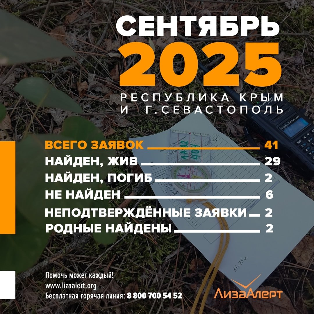 В Крыму за сентябрь нашли живыми 29 пропавших ранее человек, двое найдены погибшими