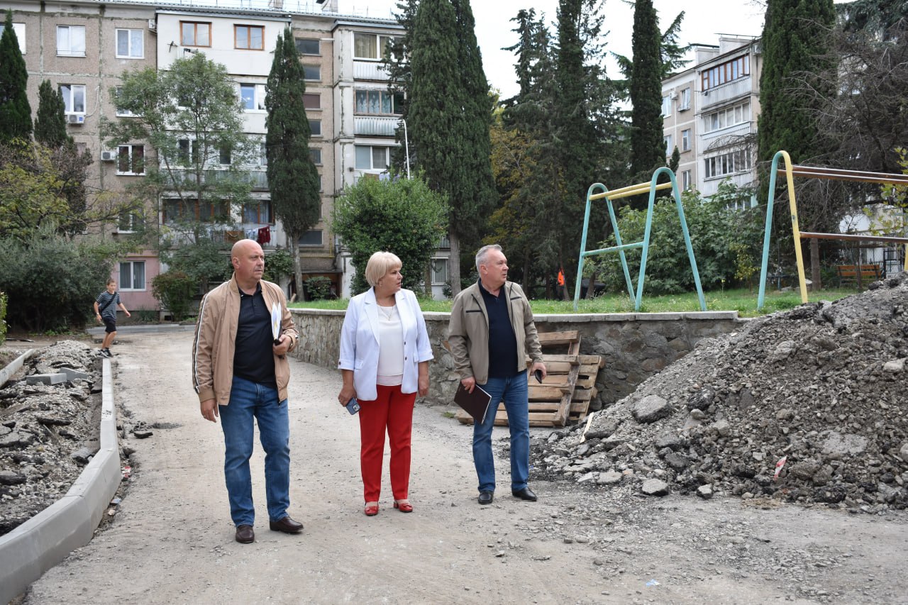 Выехала на улицу Ялтинскую, где сейчас ведутся работы по благоустройству придомовых территорий №№ 5, 7, 9, 11, 13, 15.
