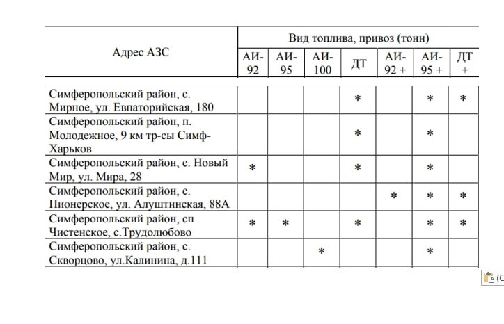 Актуальная информация о наличии топлива на АЗС Симферопольского района за наличный расчет