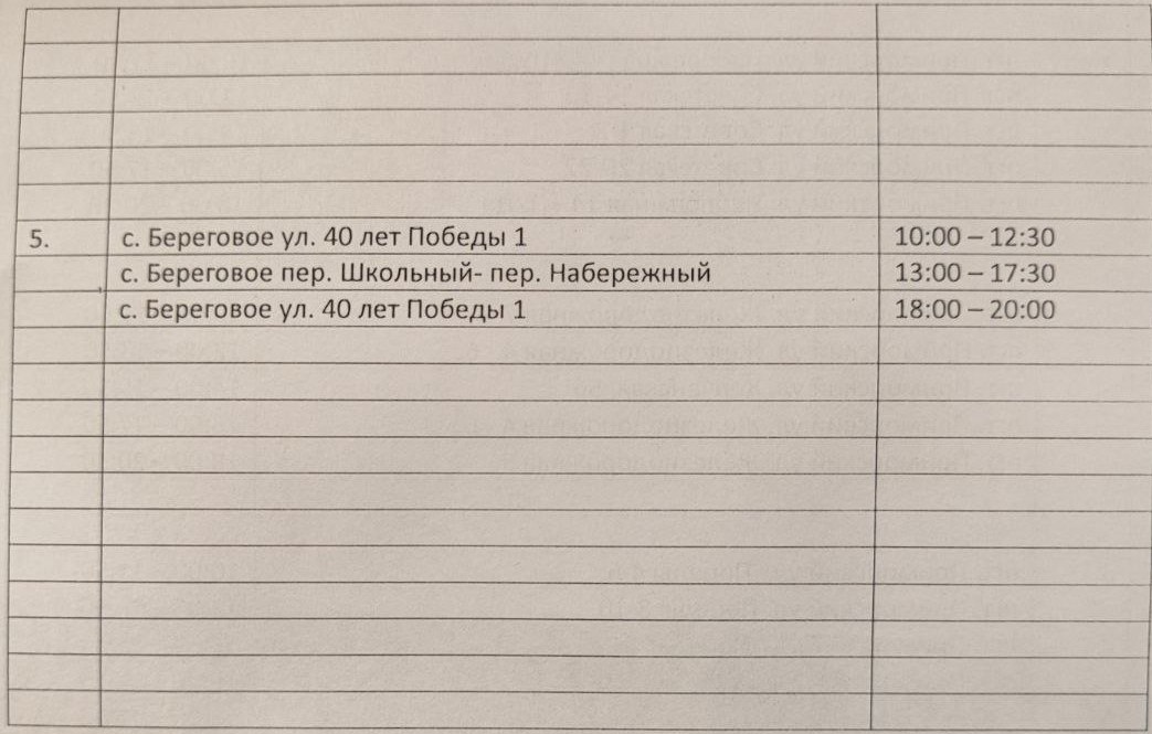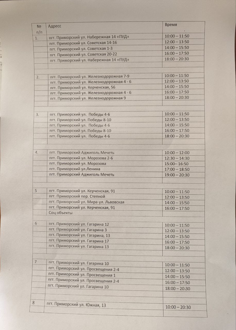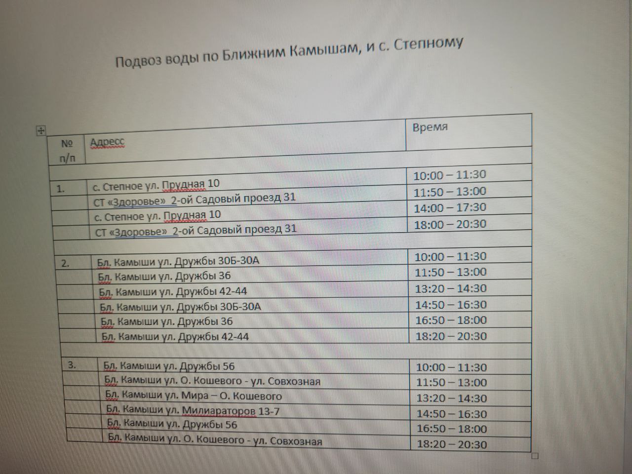 Внимание! График подвоза воды в поселок Приморский, села Степное и Береговое, микрорайон ул. Дружбы.