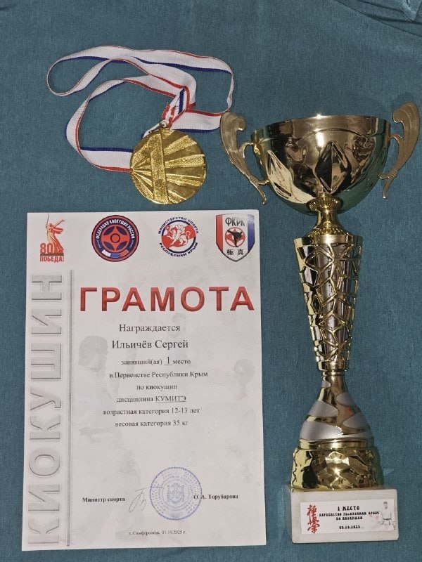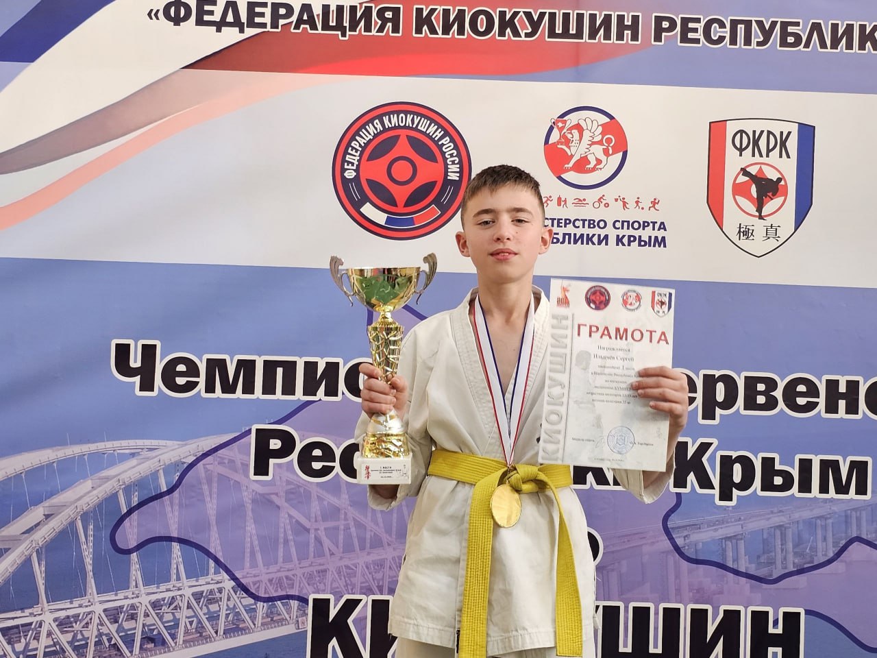 Учащийся школы №28 имени С.К. Беспалова Сергей Ильичёв занял первое место на Первенстве Республики Крым по киокушин в дисциплине кумитэ!
