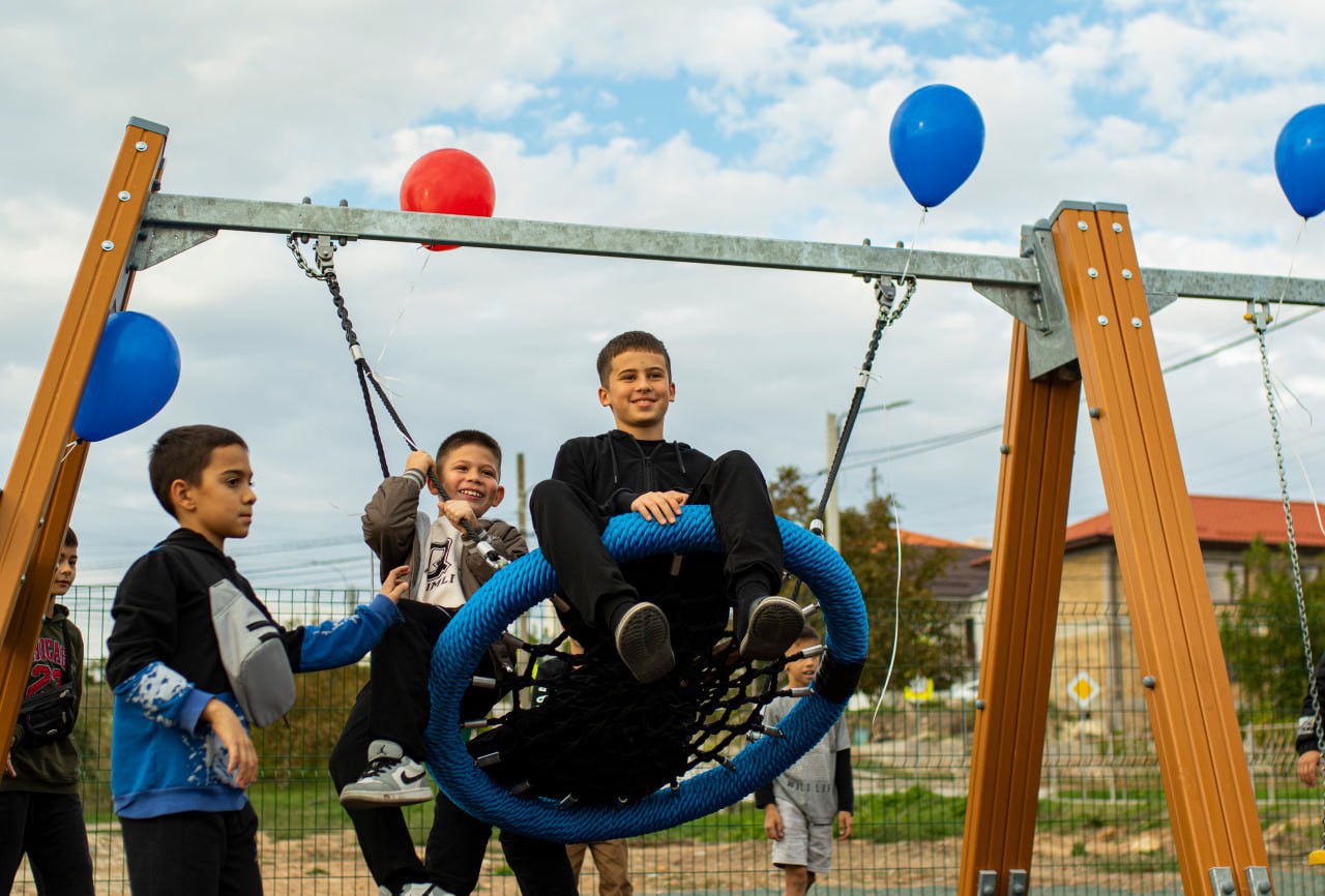 Игровое пространство с безопасным покрытием, горками и качелями будет радовать жителей ТОС «Мерхамет».