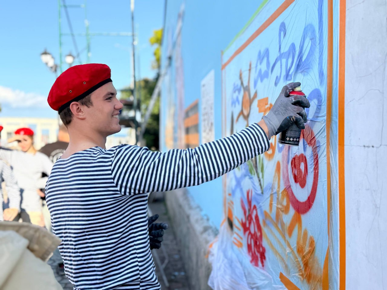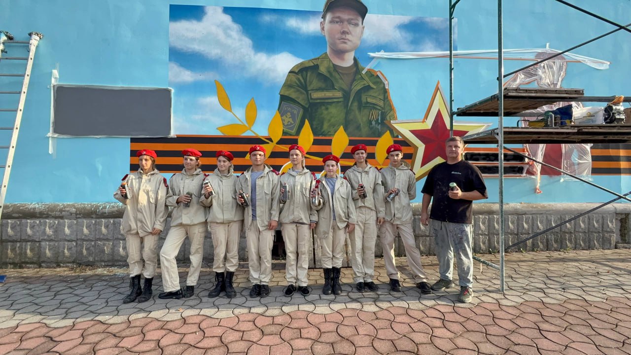 "На стене изображают портреты участника СВО и одного из юнармейцев города, принимающего активное участие в мероприятиях, имеющего достижения и награды", – написал он.