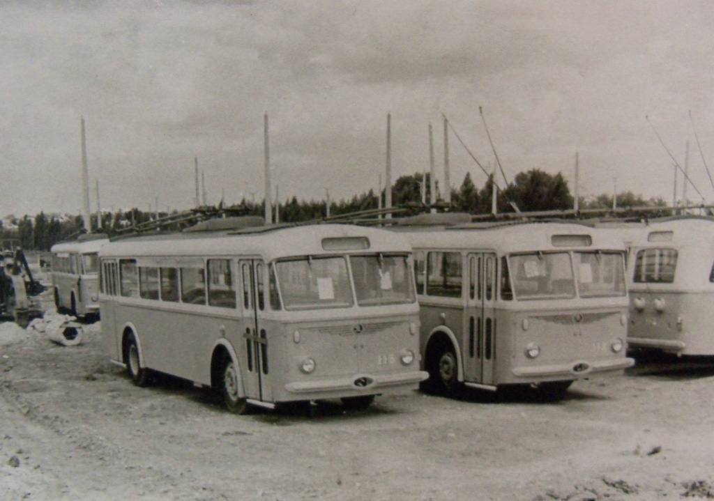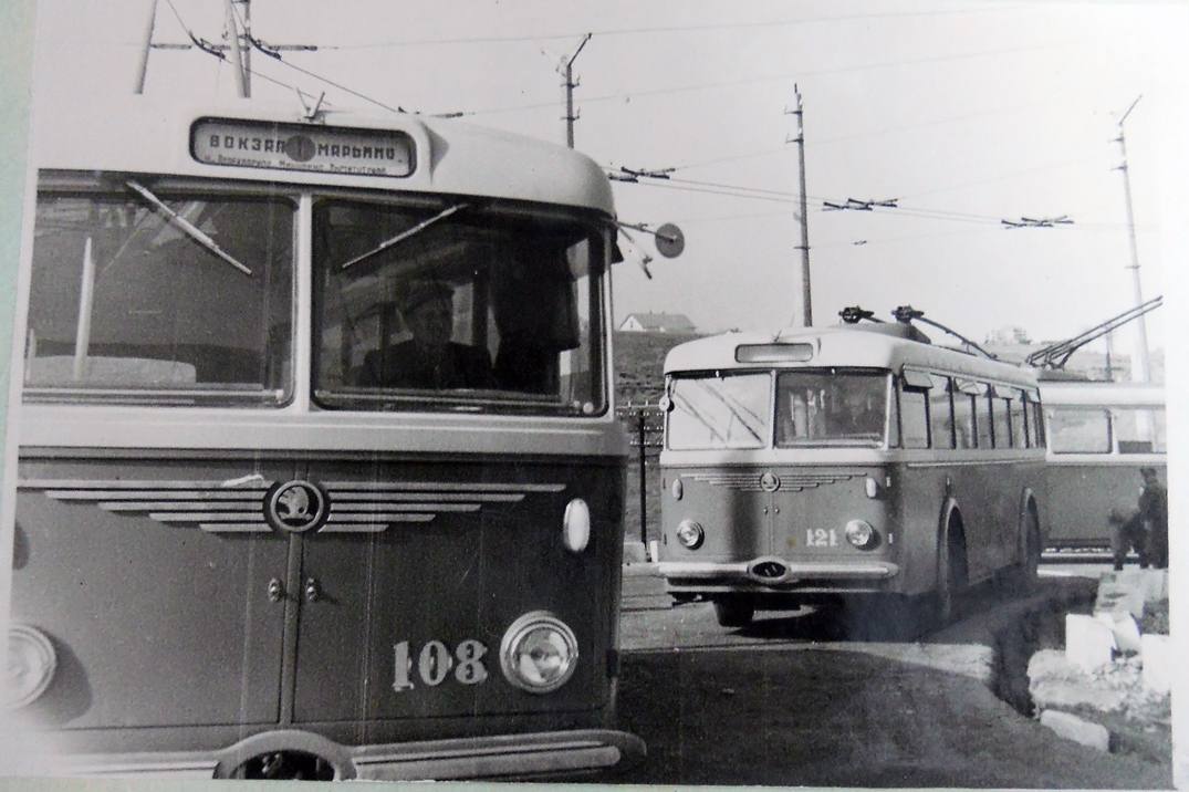 На линию вышли машины МТБ-82Д и Skoda 8Tr — надёжные, вместительные троллейбусы советского и чехословацкого производства. Они двигались тихо, плавно, без дыма и гари — настоящая революция на городских улицах конца 50-х.