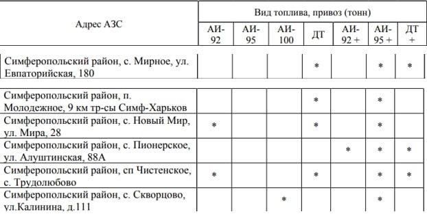 Сергей Петелин: Уважаемые жители Симферопольского района! Публикуем информацию о наличии топлива на автозаправочных станциях расположенных на территории Симферопольского района за наличный расчет