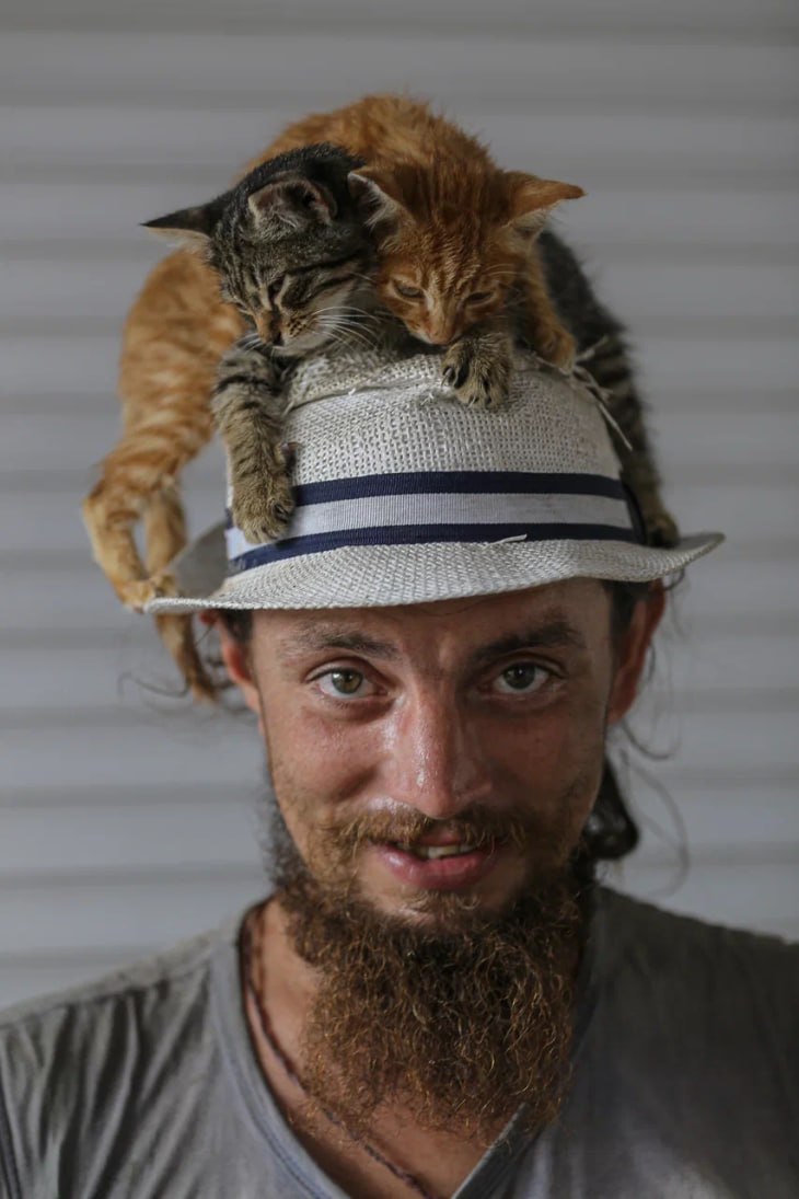 В евпаторийский приют «От сердца к сердцу» попал кот по кличке Вася — питомец уличного музыканта, который стал известен тем, что носил животное на голове, держа рядом табличку «Пару монет коту».