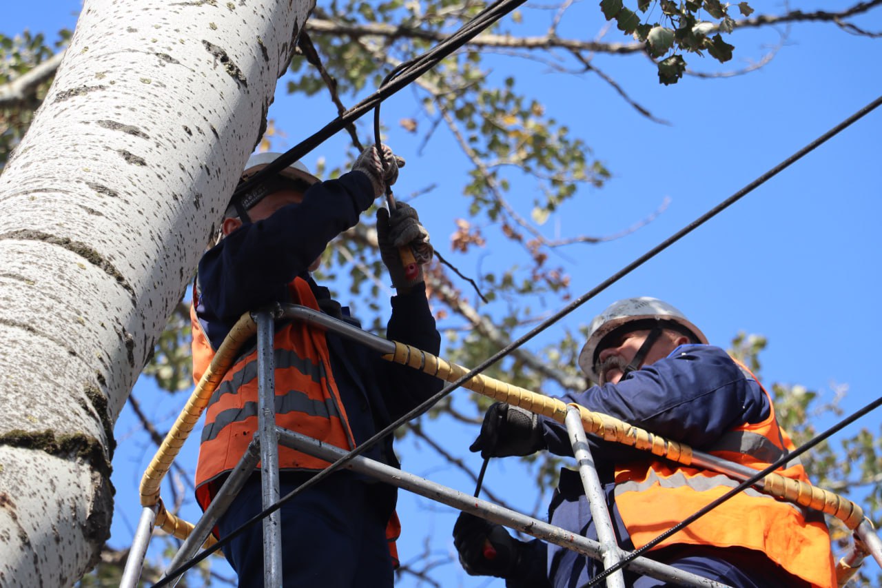 В первую очередь электромонтёры подключили светофор и освещение на пешеходном переходе у Горьковского рынка, а также частично фонари вдоль проезжей части. Сегодня продолжается работа по ремонту самонесущего изолированного провода в районе дома №22.