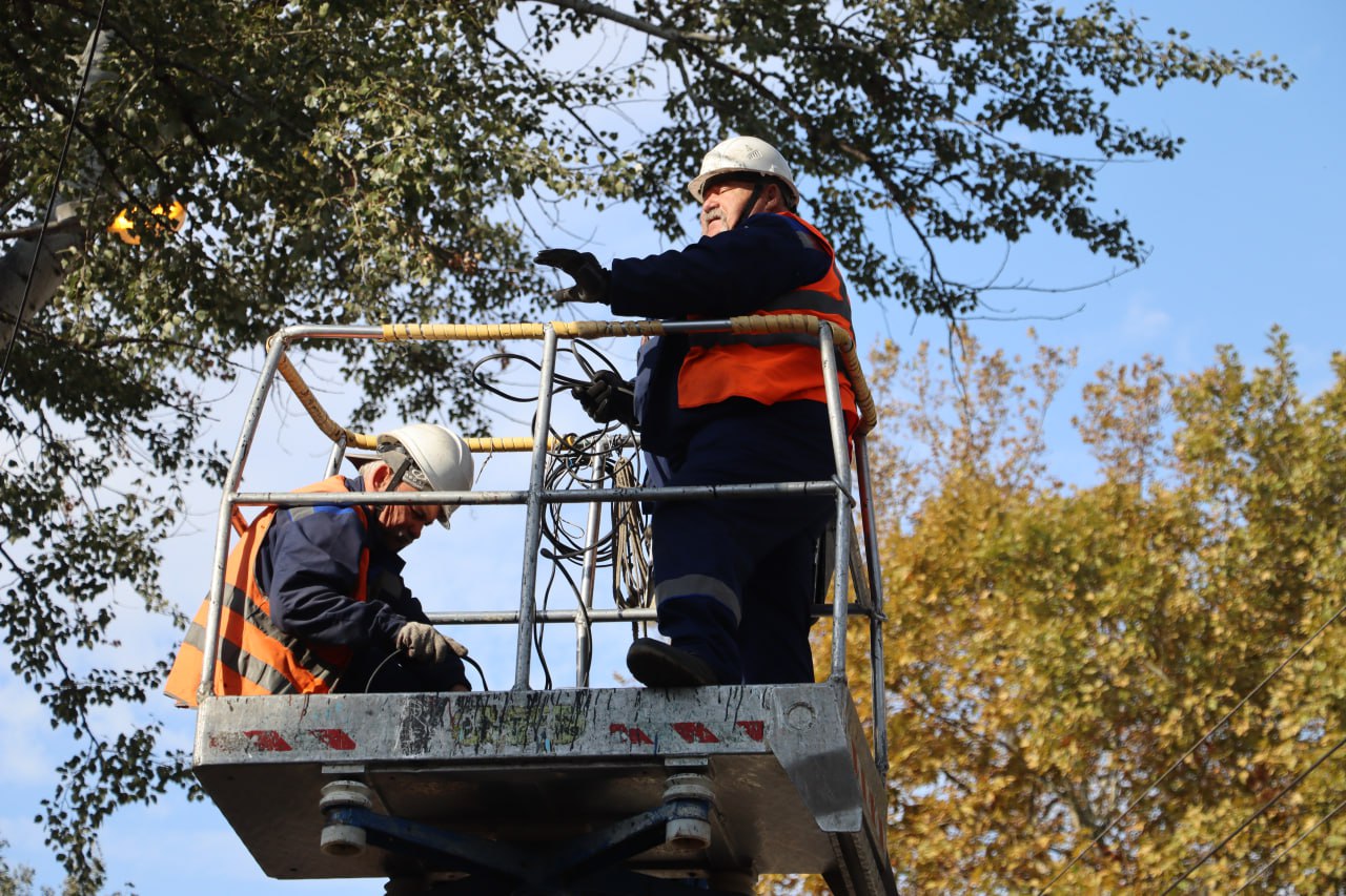 Специалисты предприятия ООО «ГорсветКерчь» второй день работают над восстановлением повреждённой линии наружного освещения вдоль ул. Горького.