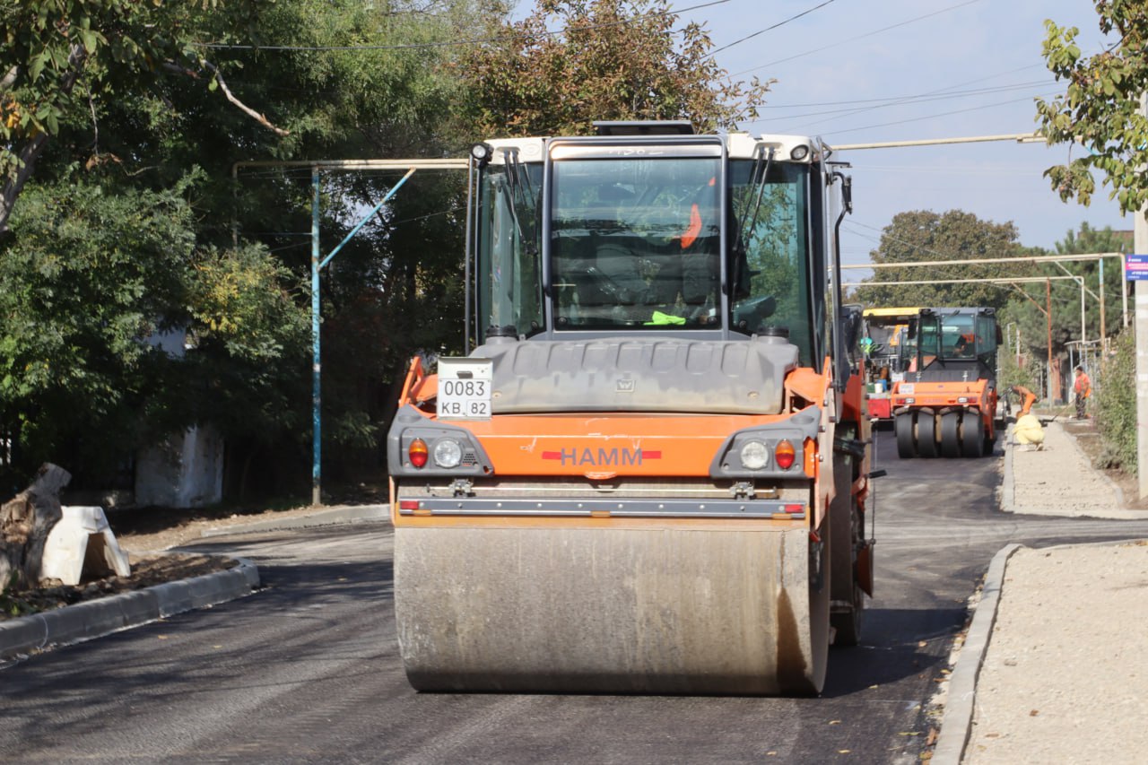 Сегодня асфальт укладывается на ул. Северной. Всего здесь будет отремонтировано порядка 500 квадратных метров дорожного полотна. Вдоль улицы подрядная организация ООО «Доринвест-Крым» выполнила установку бордюрного камня и устройство тротуара.