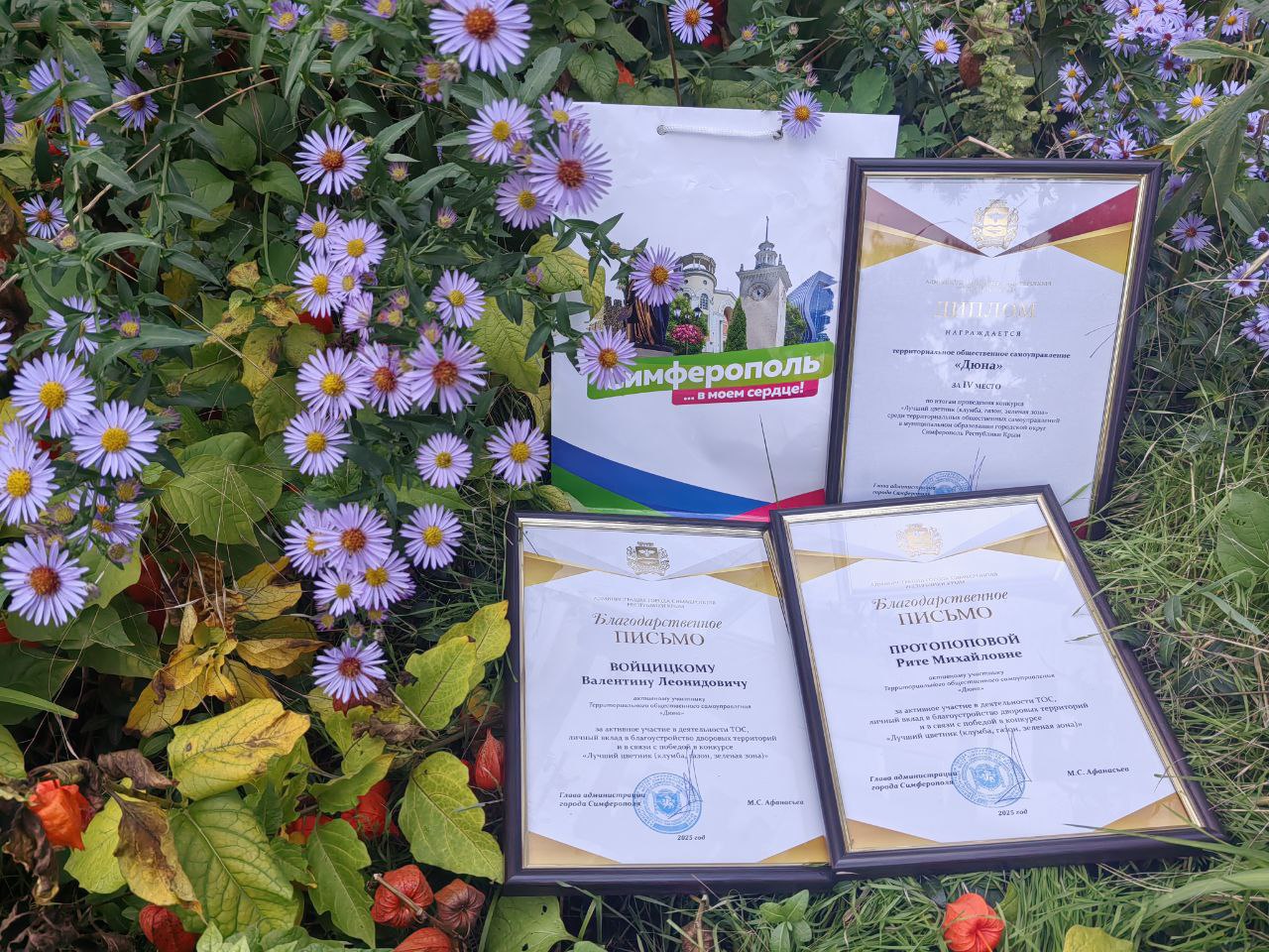 Кроме того, руководители и активисты ТОС «Дюна» были отмечены дипломами и благодарственными грамотами администрации города Симферополя за активное участие в благоустройстве и создание комфортной городской среды.