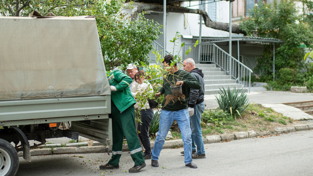 Представители администрации города Симферополя и депутат Симферопольского городского совета Нариман Аблязисов поздравили активистов ТОС «Дюна» с победой и вручили им в качестве подарка саженцы растений, которые украсят придомовые территории.