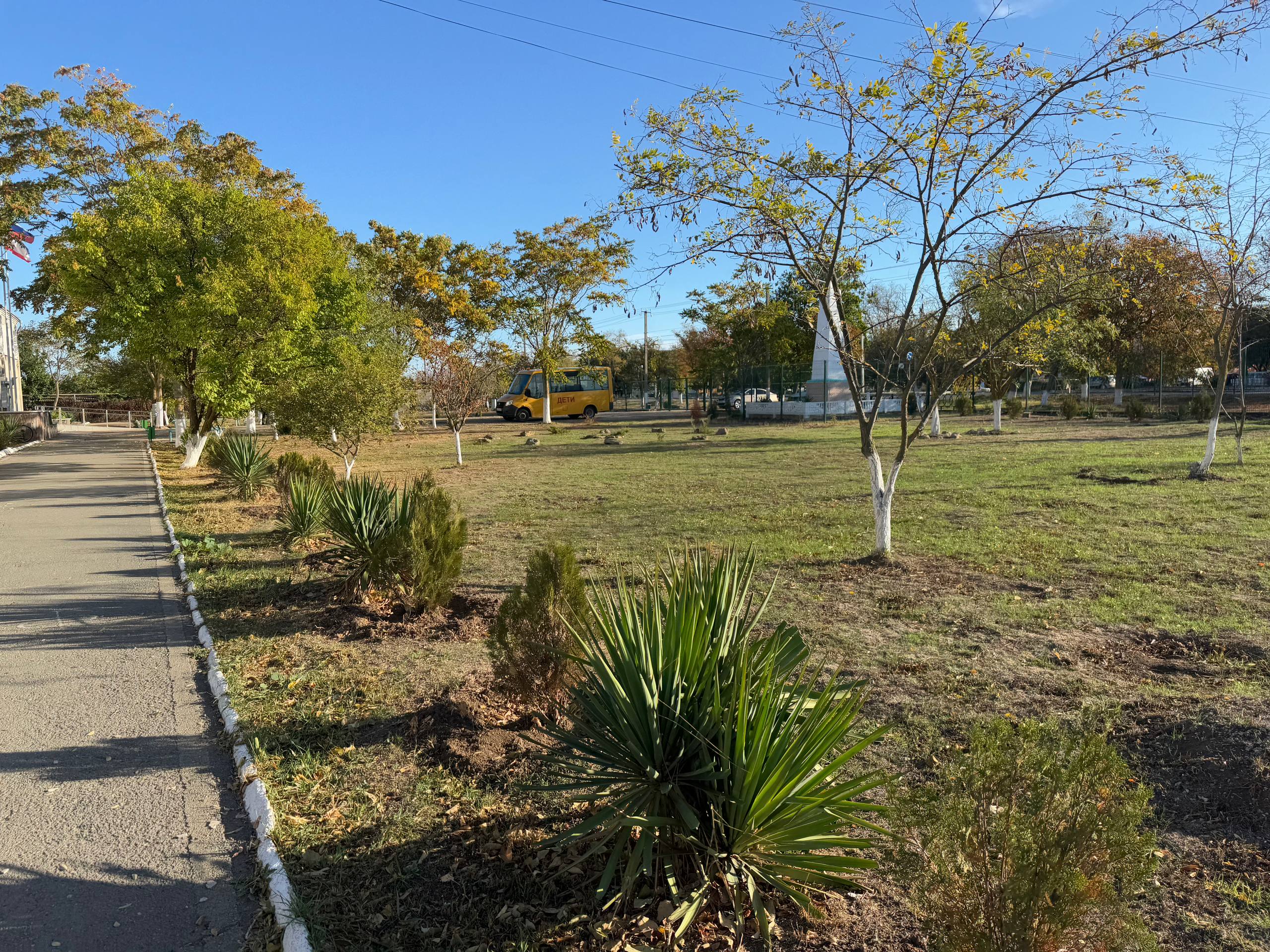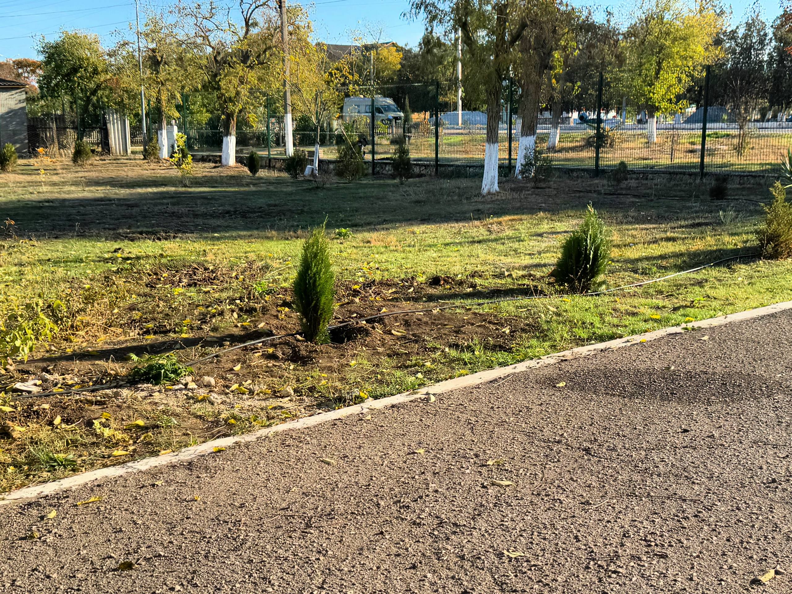 Также осмотрели дворовую территорию школы. Сейчас здесь активно ведутся работы по установке капельного полива, что позволит эффективно ухаживать за зелеными насаждениями. За последние четыре года в школе уже высажено более 100 хвойных деревьев, и это замечательно - создание комфортной и экологичной среды для детей является одним из наших приоритетов.
