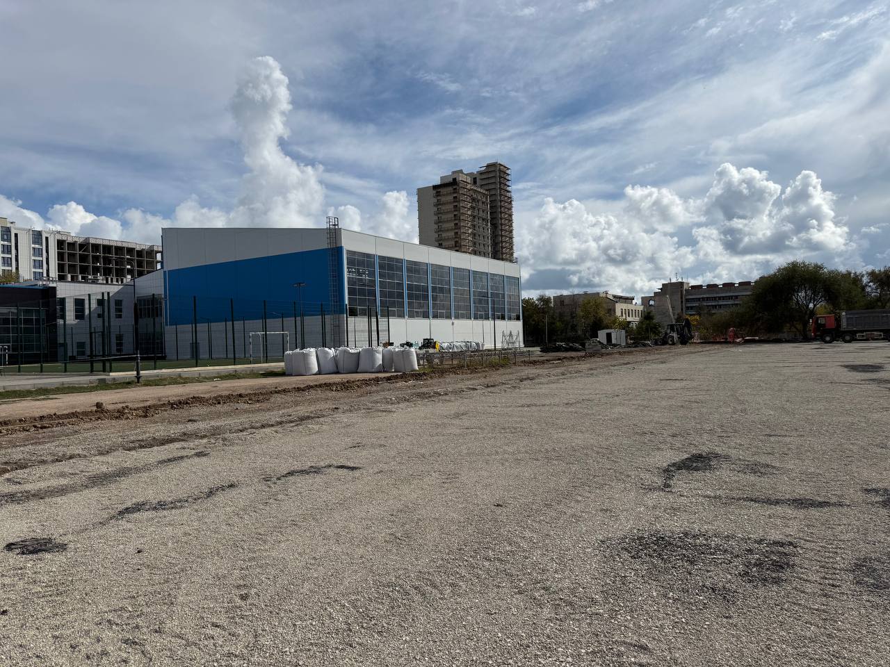 На данный момент продолжаются демонтажные работы, идёт подсыпка и выравнивание основания, укладка геотекстиля.