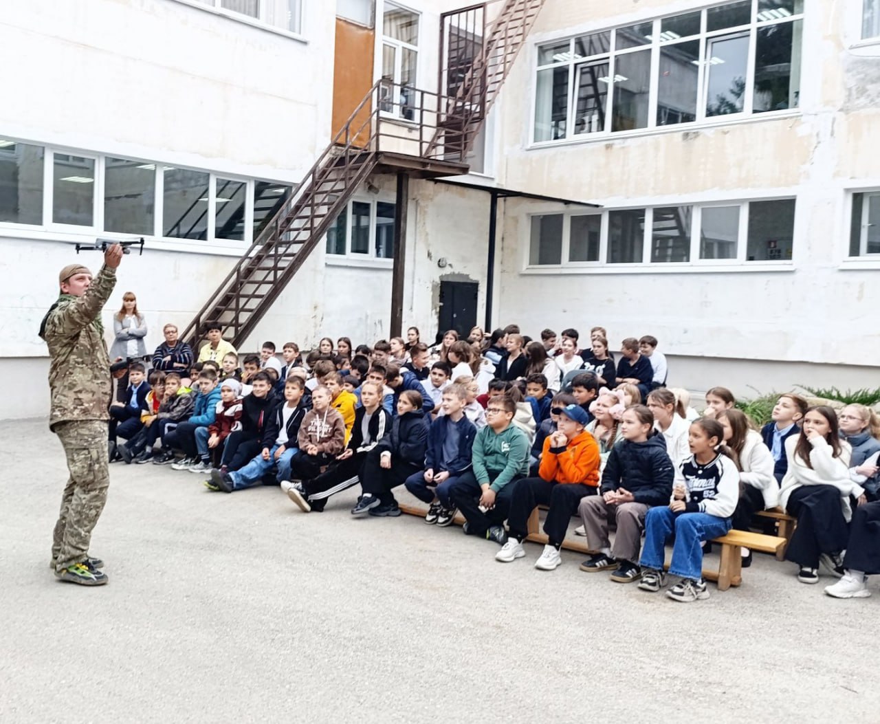 В Симферопольской школе прошло уникальное мероприятие, которое организовали фонд «Защитники Отечества» и общественная организация «Матери Крыма солдатам Отечества». Ветераны спецоперации – инструкторы учебного центра «Шершень» провели для крымских школьников по теме «Значимость БПЛА в современных реалиях».