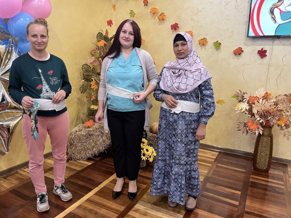 Директор Центра социальных служб для семьи, детей и молодежи Галина Чижова сердечно поздравила будущих мам с их праздником, преподнесла им памятные подарки, и пожелала чтобы каждый день в их положении был добрым, волшебным, приятным, радостным.