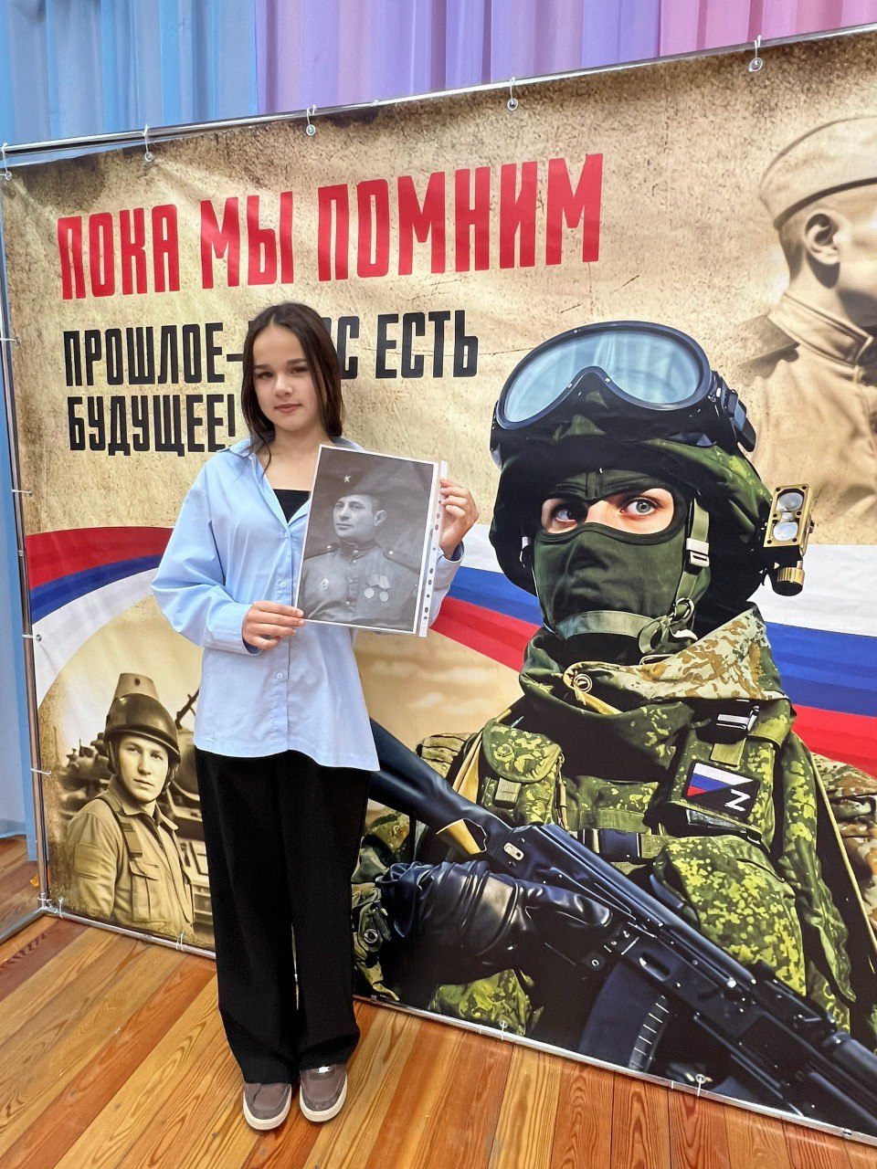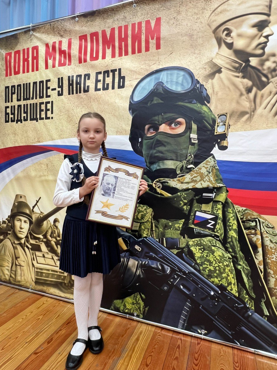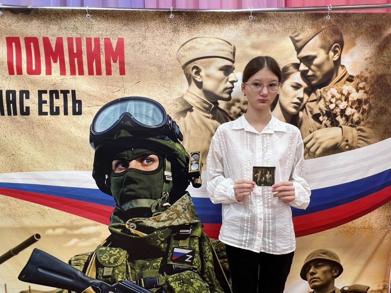 Ученица 1 класса, Ольга Репета, рассказала о боевом пути своего прапрадеда, а ученица 5 класса, Милана Ваапова, написала сочинение о героической судьбе своего прапрадеда. Ученицы 8 класса, Варвара Лакиева и Мария Дворяшина, поделились историей жизни своих прадедов.