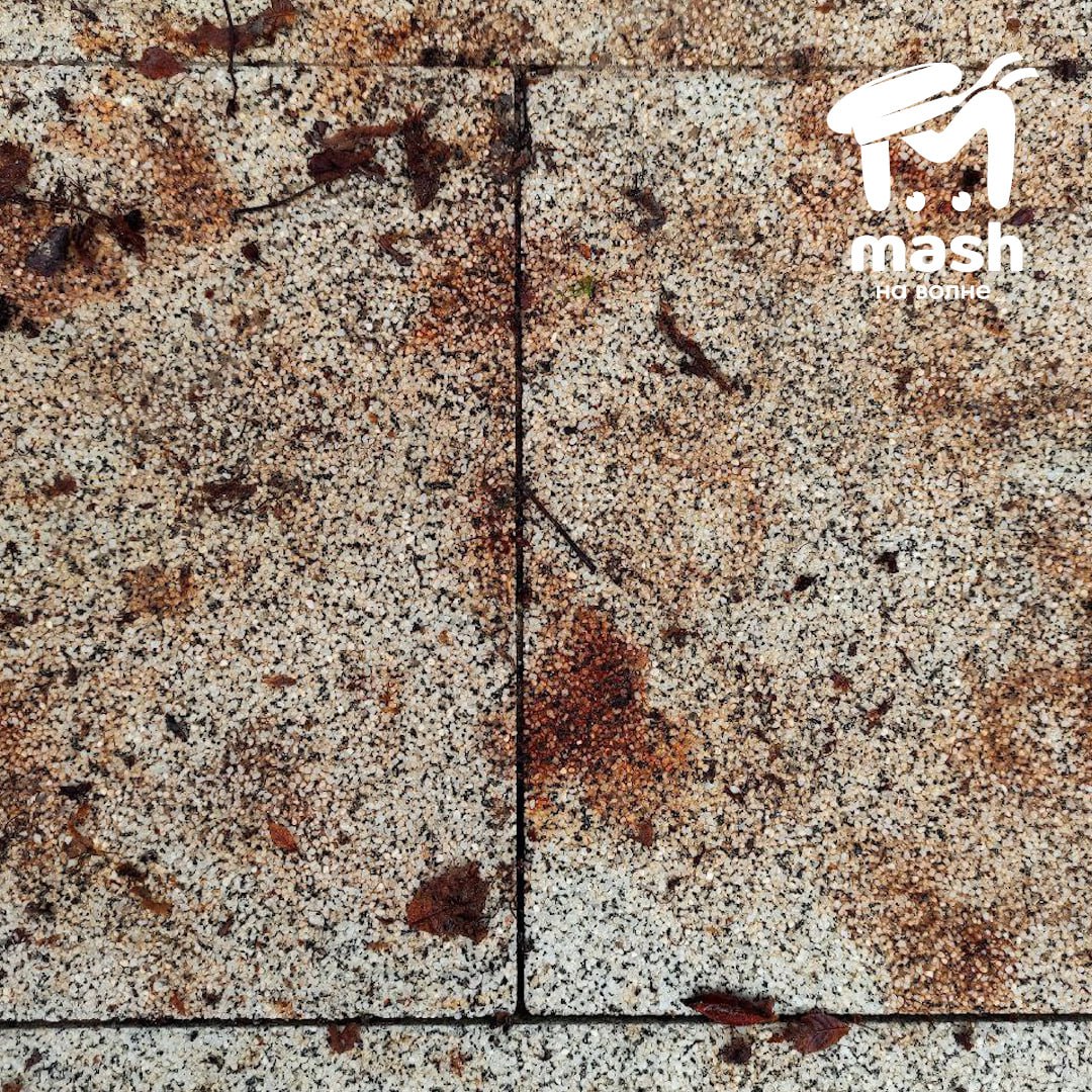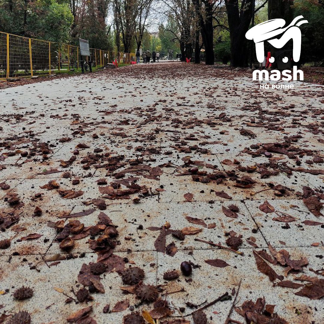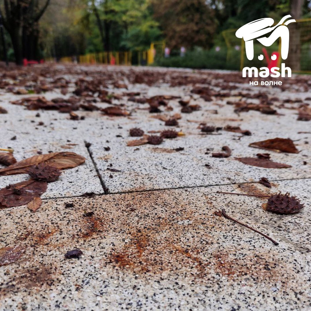 Такие следы остаются на новенькой плитке, которой заменили асфальт, от листьев каштанов. Тех самых, что растут там уже лет 40 и проворачивают этот номер каждый год.
