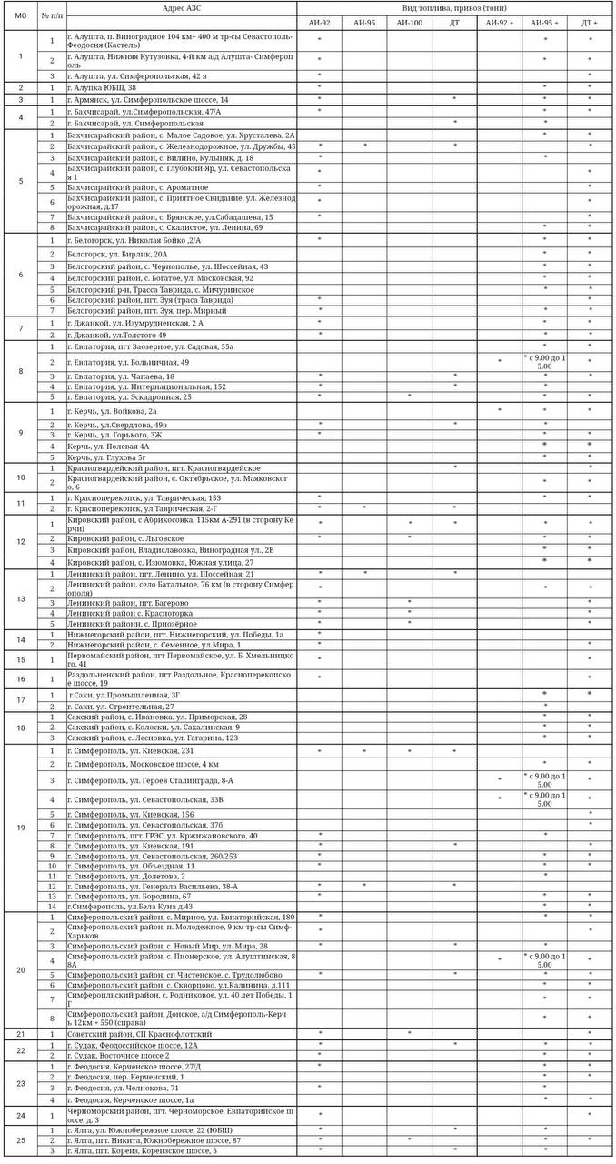 Актуальная информация о наличии топлива на заправках Крыма