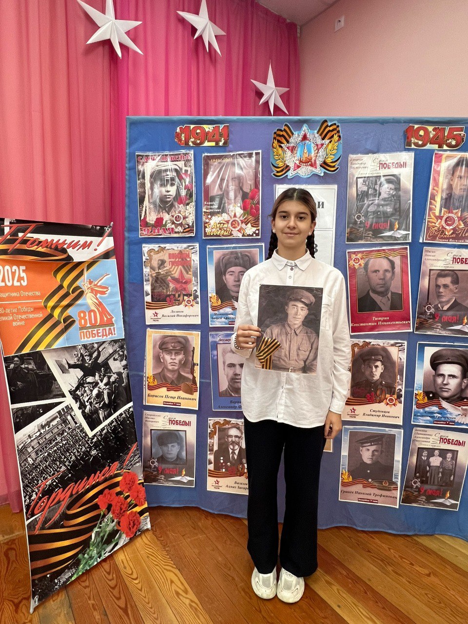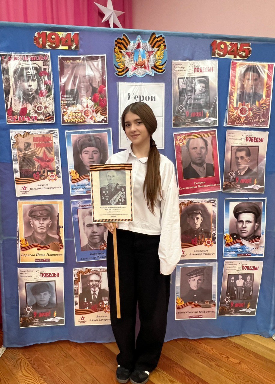 Ученица 8-го класса Эльвина Алиева написала о прадеде - уроженце Крыма. Его имя внесено в Книгу памяти павших защитников Отечества. В работе сказано, что семья хранит фронтовые письма и фотографии.