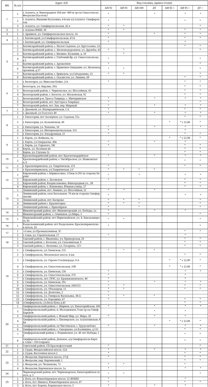 В прилагаемом списке указаны марки топлива и адреса АЗС, где оно доступно в свободной продаже.