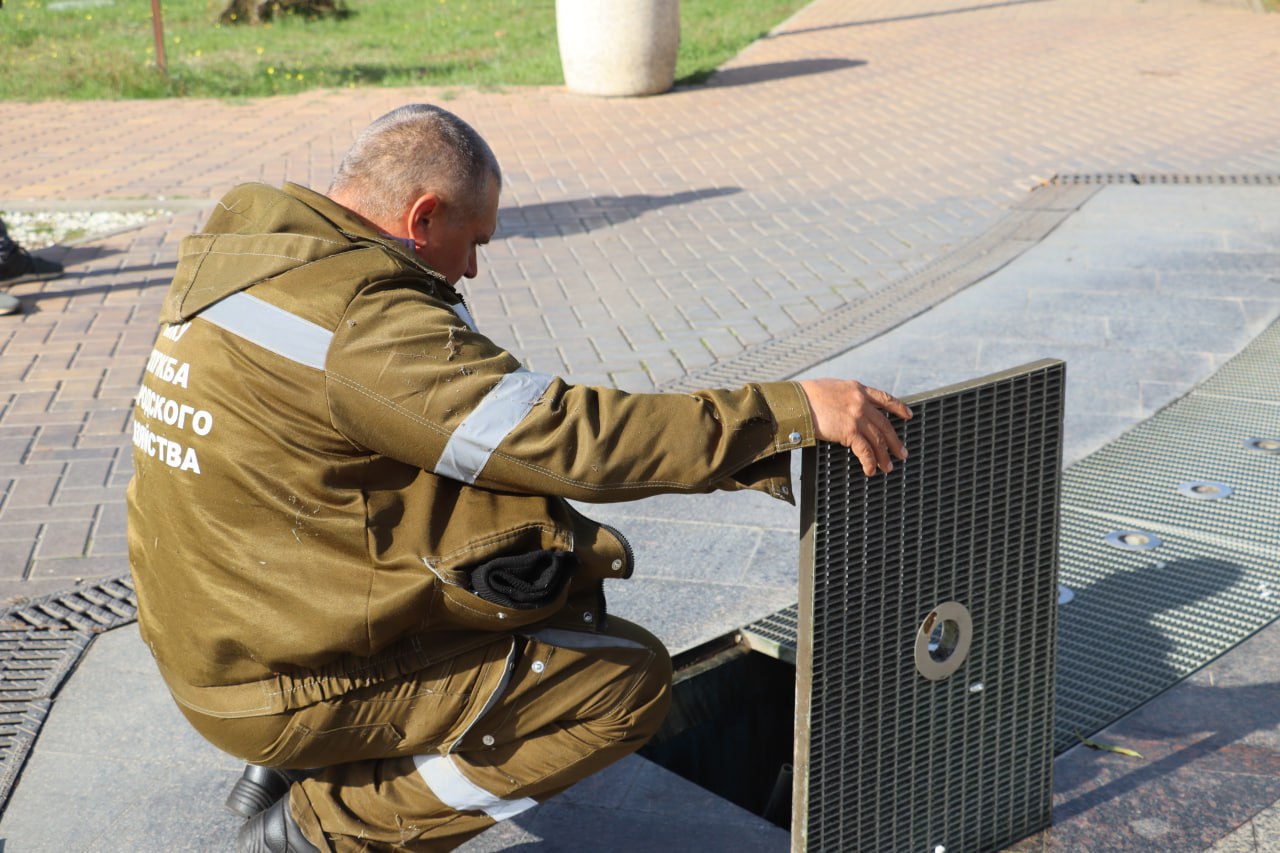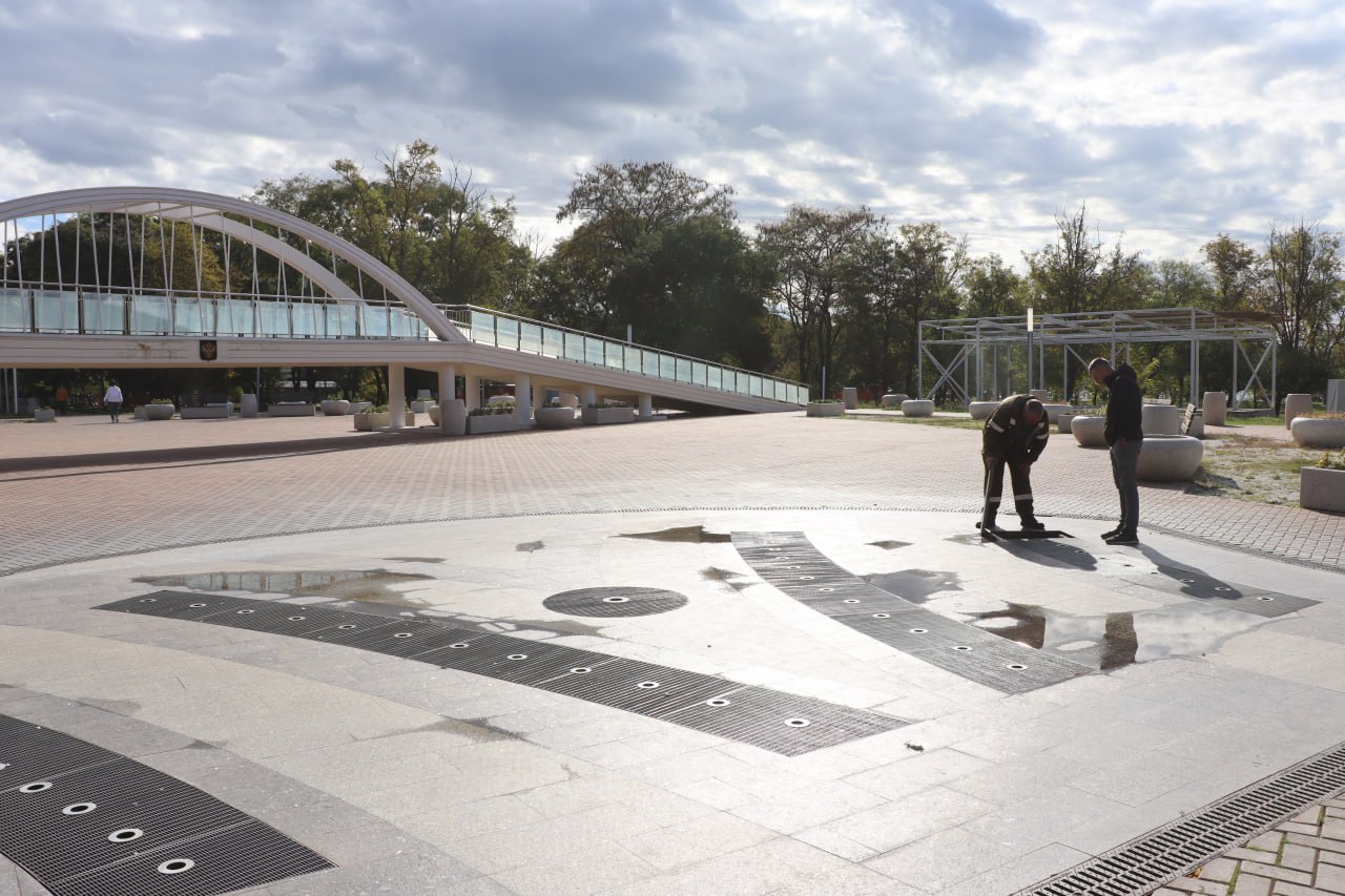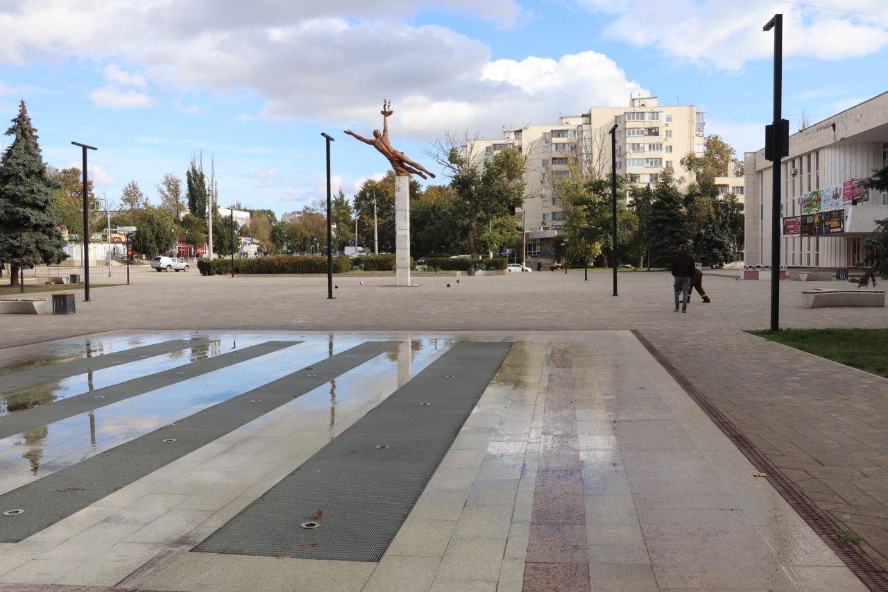 А вот фонтан у здания городской администрации до конца месяца будет радовать жителей и гостей города своей красотой.