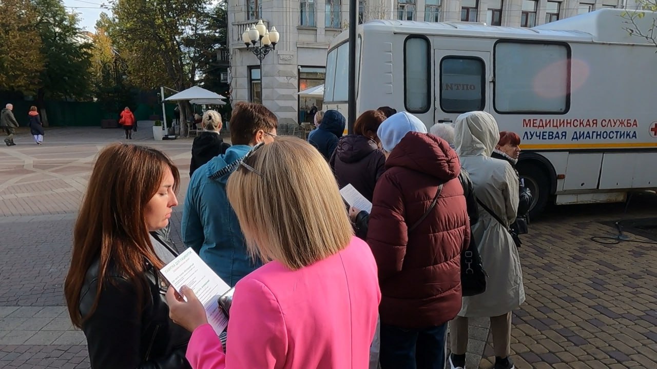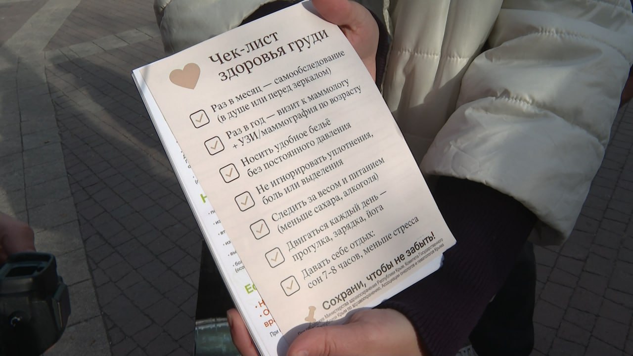 В Симферополе прошла акция ко Всемирному дню борьбы со злокачественной опухолью молочной железы. Женщины могли бесплатно пройти обследование и получить консультацию маммолога. Прохожим раздавали информационные листовки. Женщинам от 40 лет рекомендуют проходить обследование у специалиста раз в 2 года. Тем, у кого отягощённый анамнез и есть случаи онкологии в семье, следует обращаться к маммологу ежегодно.