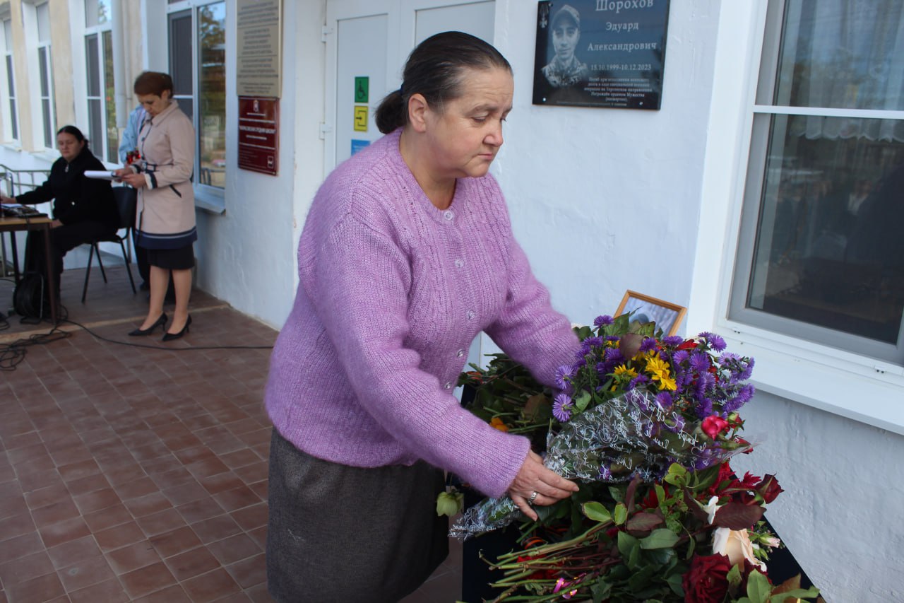 15 октября в селе Некрасовке, на здании МБОУ «Некрасовская СШ», открыли мемориальную доску погибшему при исполнении воинского долга в ходе Специальной военной операции на Украине, Кавалеру ОРДЕНА МУЖЕСТВА, Герою СВО - Шорохову Эдуарду Александровичу.