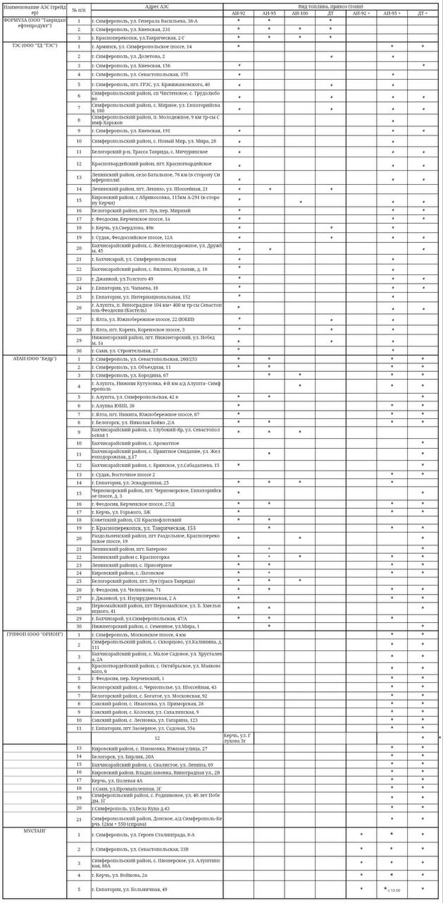 Актуальная информация о наличии топлива на заправках Крыма