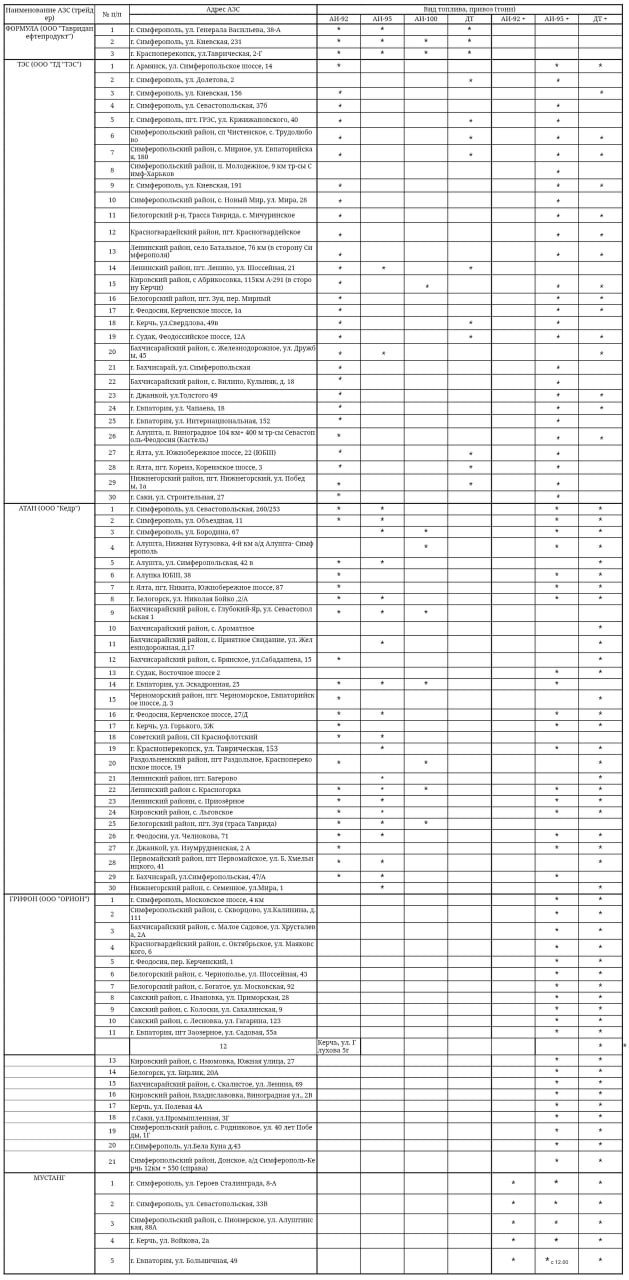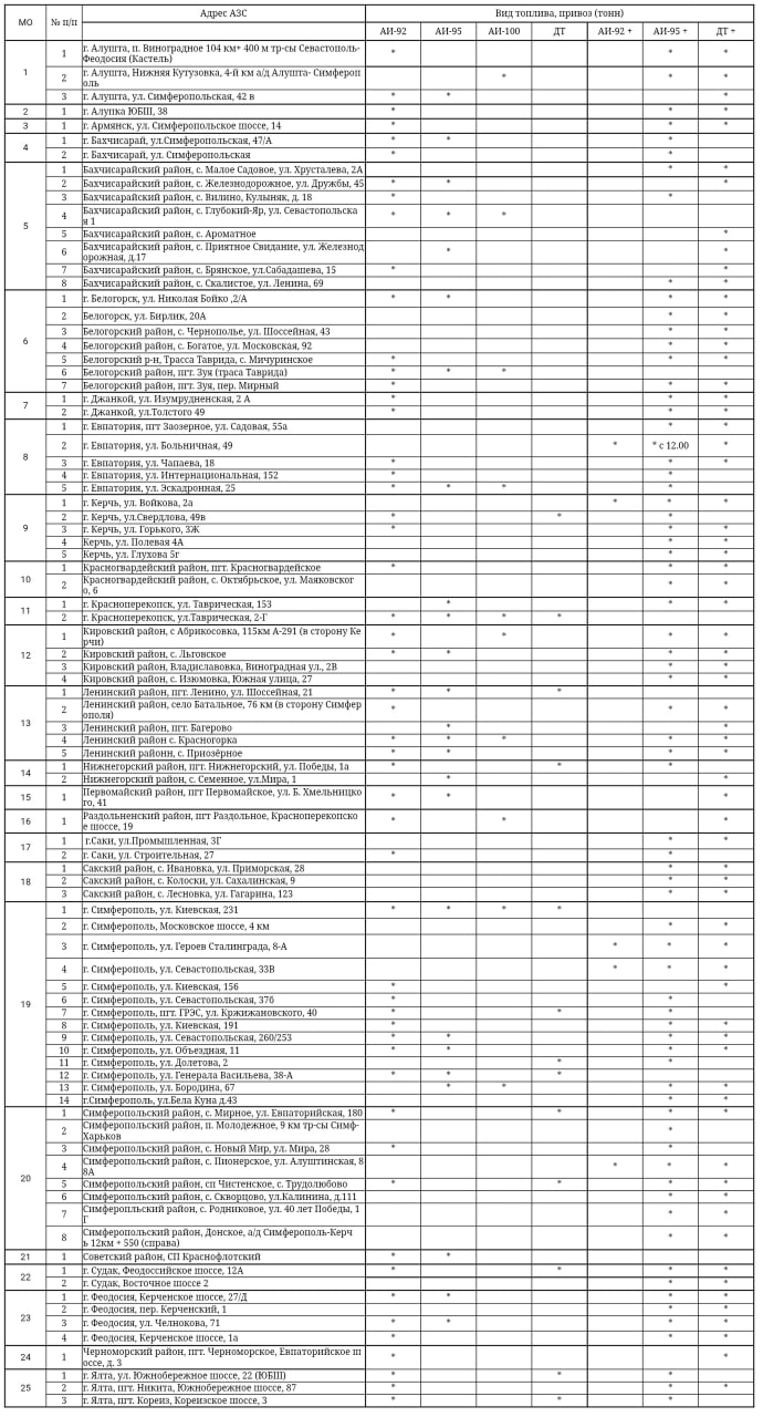 В прилагаемом списке указаны марки топлива и адреса АЗС, где оно доступно в свободной продаже.