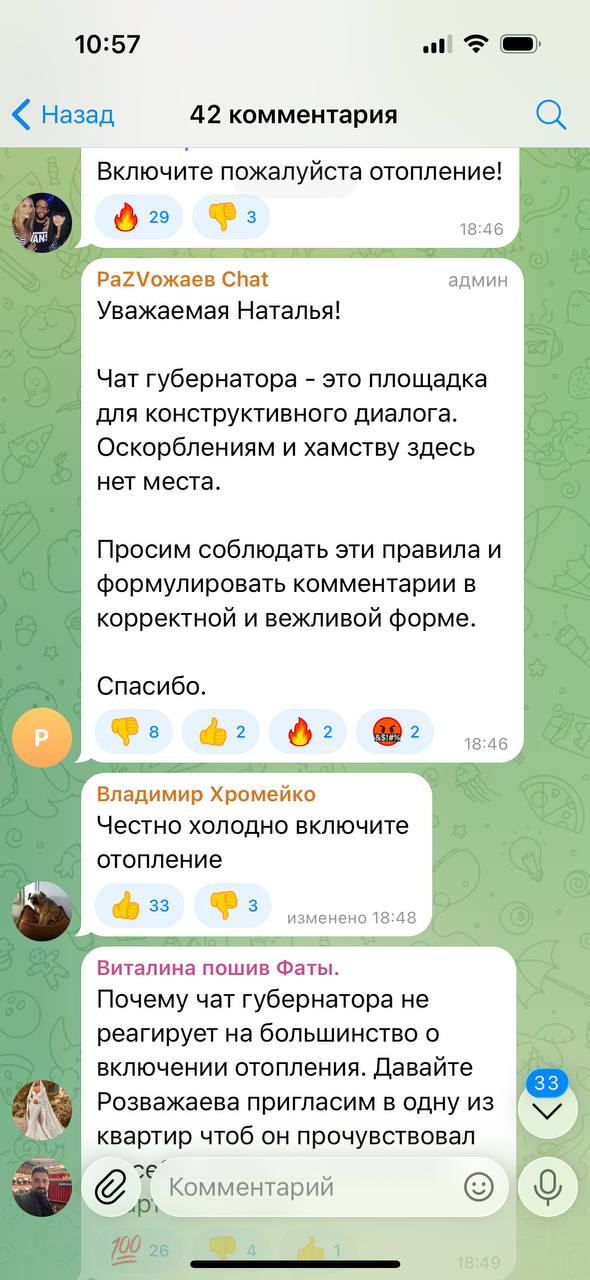 Комментарии под этой новостью – отдельный жанр. Люди вынуждены унижаться и просить включить отопление, ибо реально в домах холодно. А им отвечают боты: мол, сидите тихо!