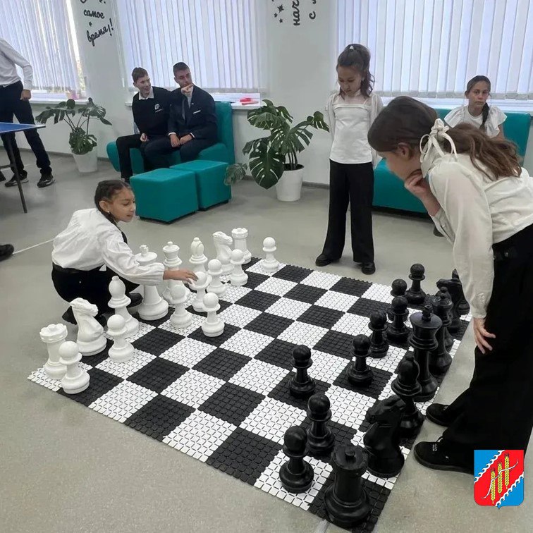 Новое пространство включает в себя 4 зоны: спортивную, шахматную, телевизионную и творческую мастерскую. Установлены пуфы для создания удобных мест для сидения, напольные фигурные шахматы и шахматная доска для организации игровых мероприятий, диван и стулья для зоны кинотеатра, телевизор, система домашнего кинотеатра, беспроводная аудиосистема.