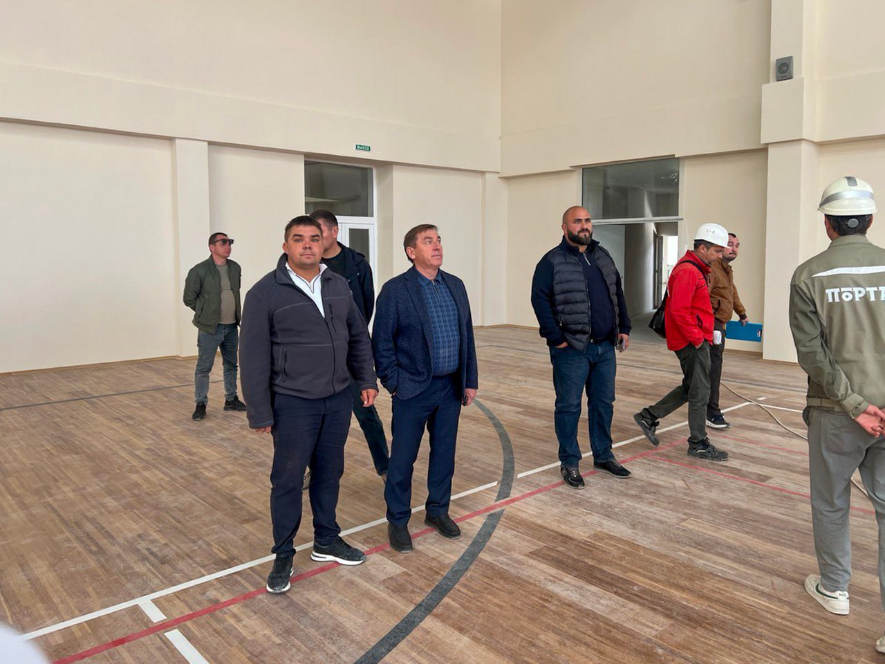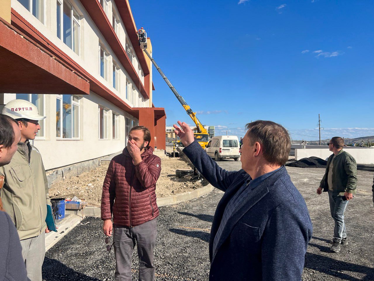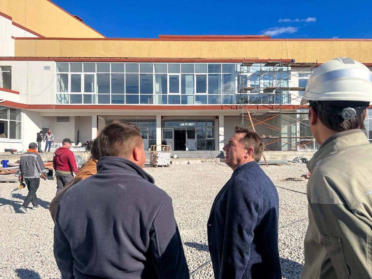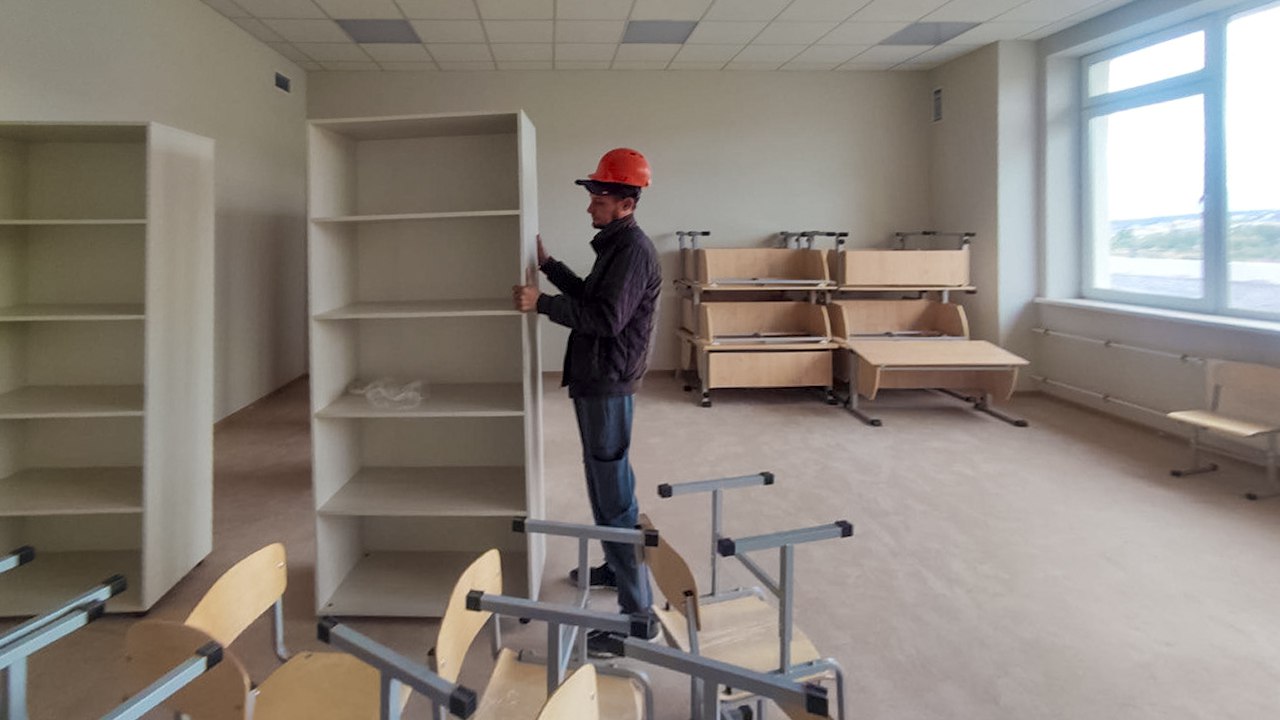 На прилегающей территории проводится благоустройство, включая устройство наружного освещения и монтаж систем видеонаблюдения. Параллельно осуществляется сборка мебели.
