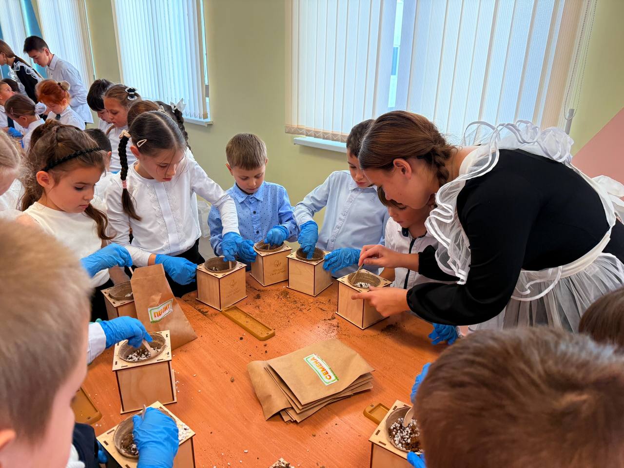 С большим интересом юные участники сеяли семена Сосны Крымской. В специально подготовленных горшочках, наполненных питательной смесью из грунта, керамзита и перлита, они бережно разместили семена, положив начало жизни будущих деревьев.