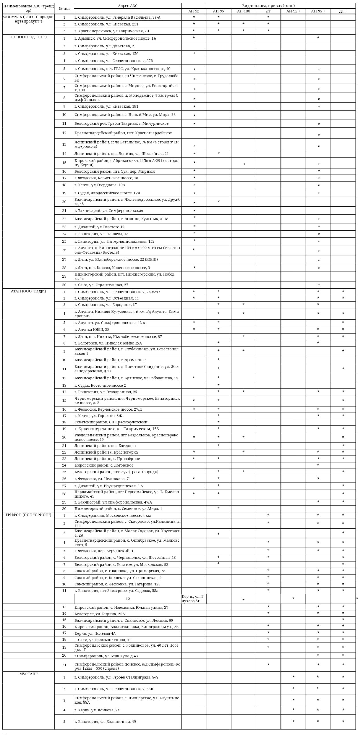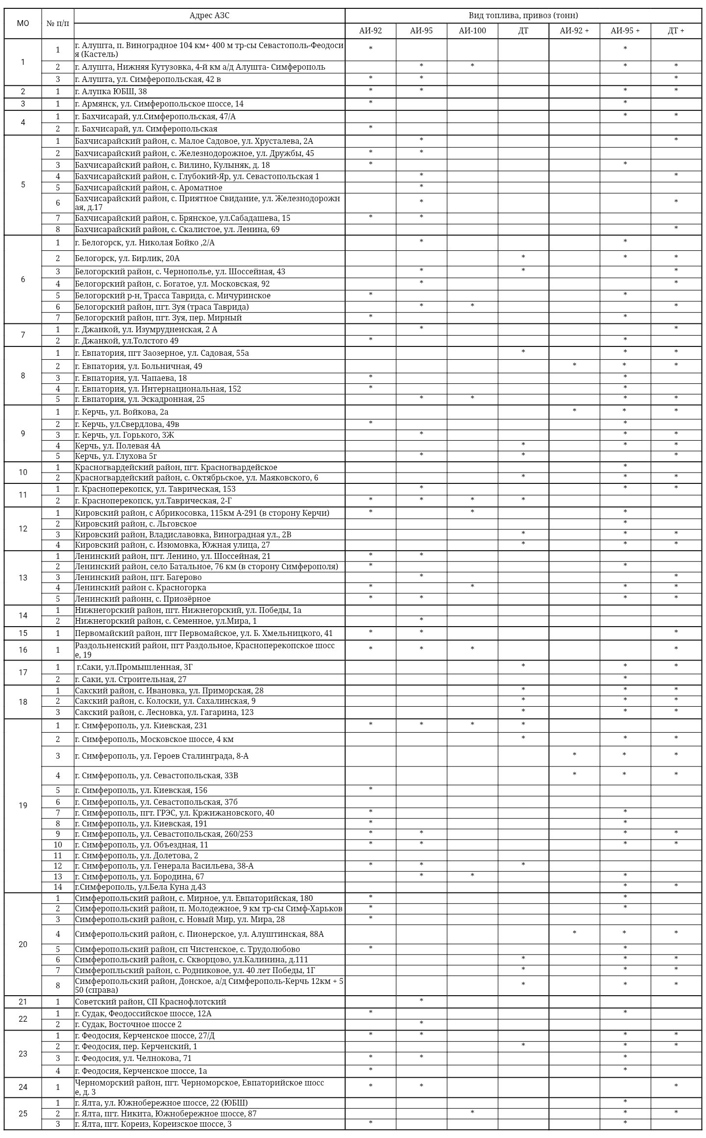 Перечень адресов АЗС обновляется ежедневно и доступен на официальных ресурсах: портале Правительства РК и Министерства топлива и энергетики РК.
