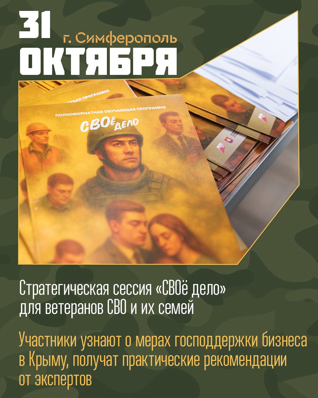 В Крыму пройдет стратегическая сессия «СВОё дело» для ветеранов СВО и их семей