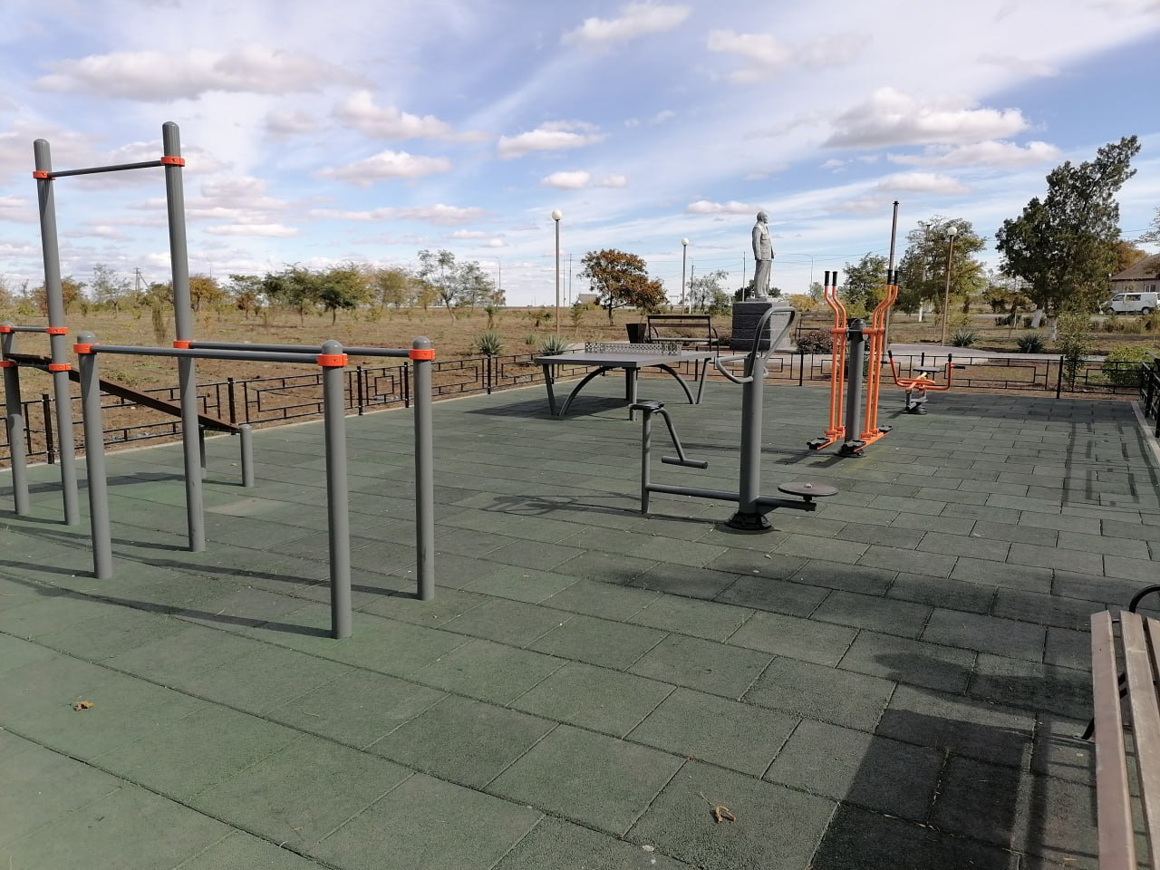После благоустройства сквера за счет республиканских средств Бюджета рядом с ним установили детско-спортивную площадку, для досуга малышей и занятий спортом для всех желающих.