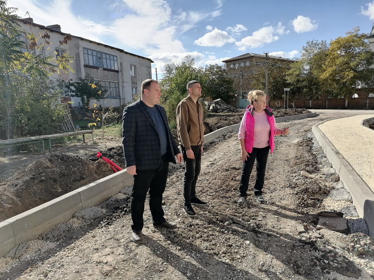 Выехали на место, чтобы оценить ход производства работ. В рамках проекта благоустройства предполагается замена асфальтового покрытия, установка бортовых камней, обустройство тротуара, а также установка лавочек, урн и опор освещения.