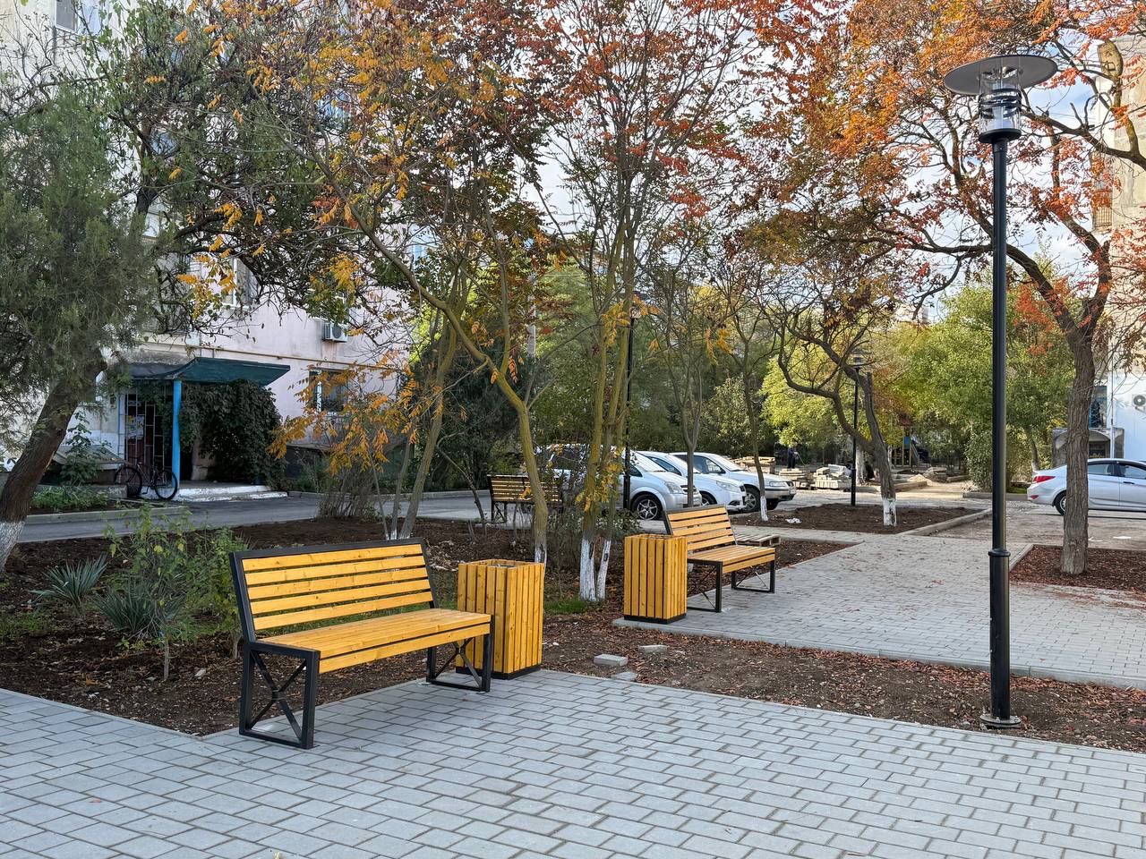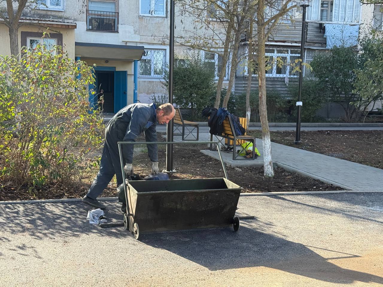 Также выполняется благоустройство ещё одной дворовой территории, расположенной в этом районе – двора по пр. Победы 16, 18.