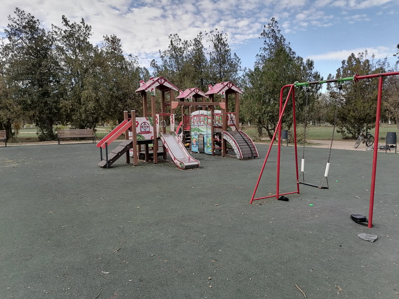 К сожалению, в настоящее время системная работа по санитарному содержанию парка не налажена, на клумбах вместо цветов – засохшая елка и трава вперемешку с сорной растительностью. Поломаны отдельные элементы благоустройства на детской площадке, оторван светильник на опоре освещения. Такое невнимательное отношение к новому объекту благоустройства со стороны администрации поселения недопустимо.