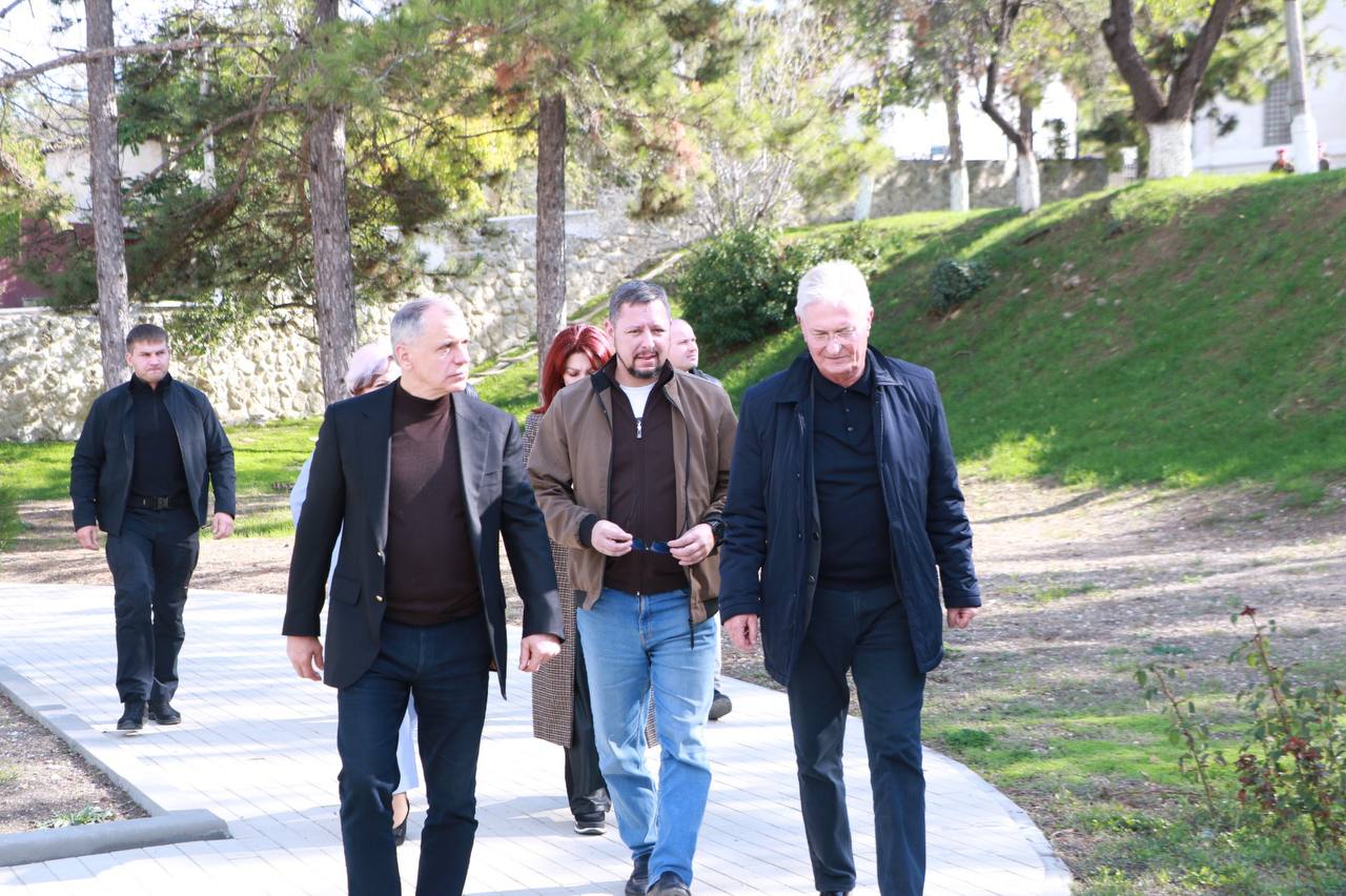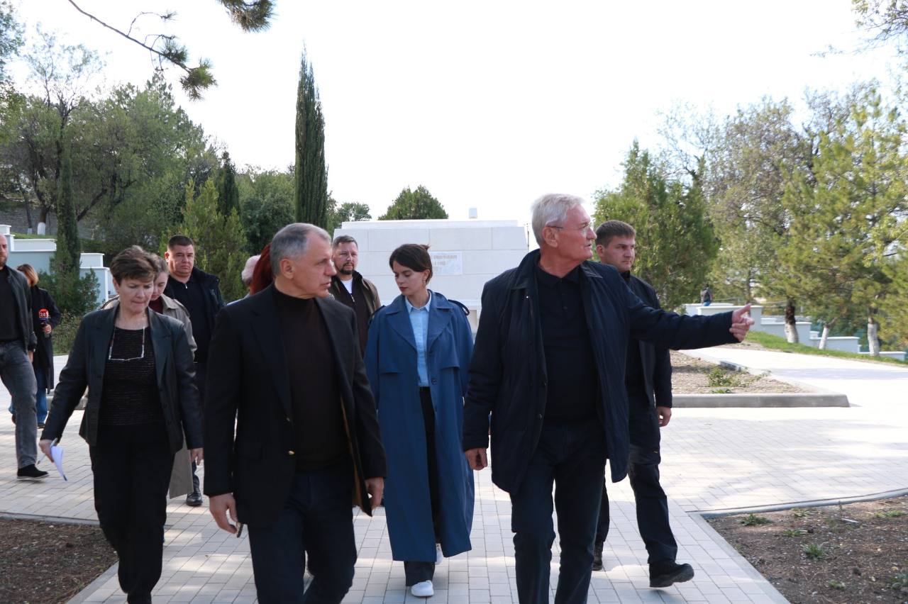 В продолжение рабочей поездки Владимир Константинов посетил Братское кладбище советских воинов, находящиеся на территории Бахчисарайского Ханского дворца, на территории которого встречал участников рабочего визита глава администрации города Бахчисарай Дмитрий Скобликов.