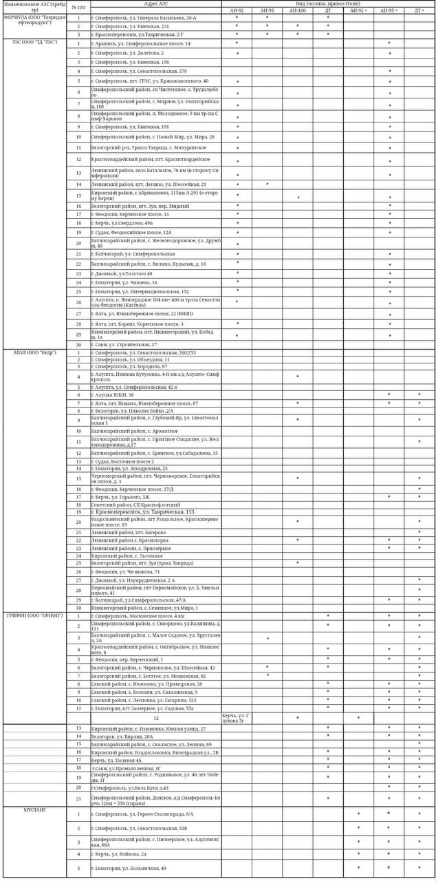 Актуальная информация о наличии топлива на автозаправочных станциях в Нижнегорском (18 октября 2025 г.)