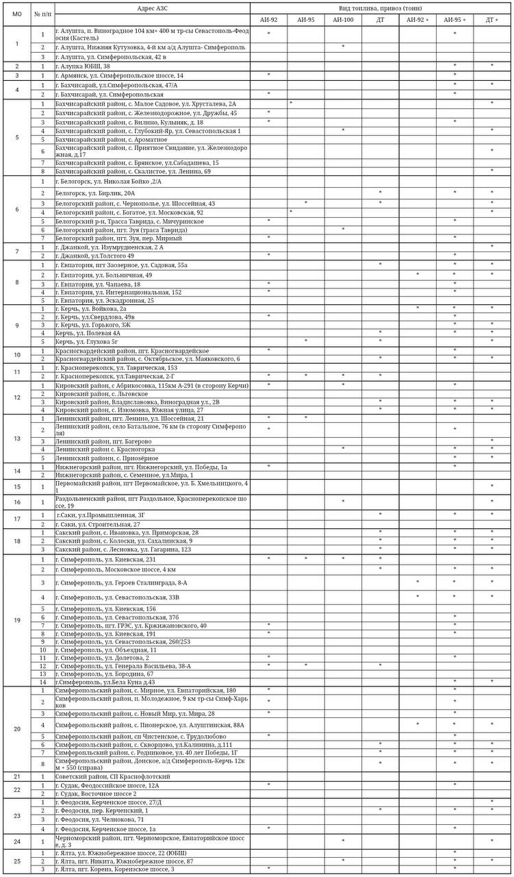 По состоянию на 8.00 часов 18 октября 2025 года в Нижнегорском районе реализуется топливо по всем формам оплаты на автозаправочных станциях по адресам: