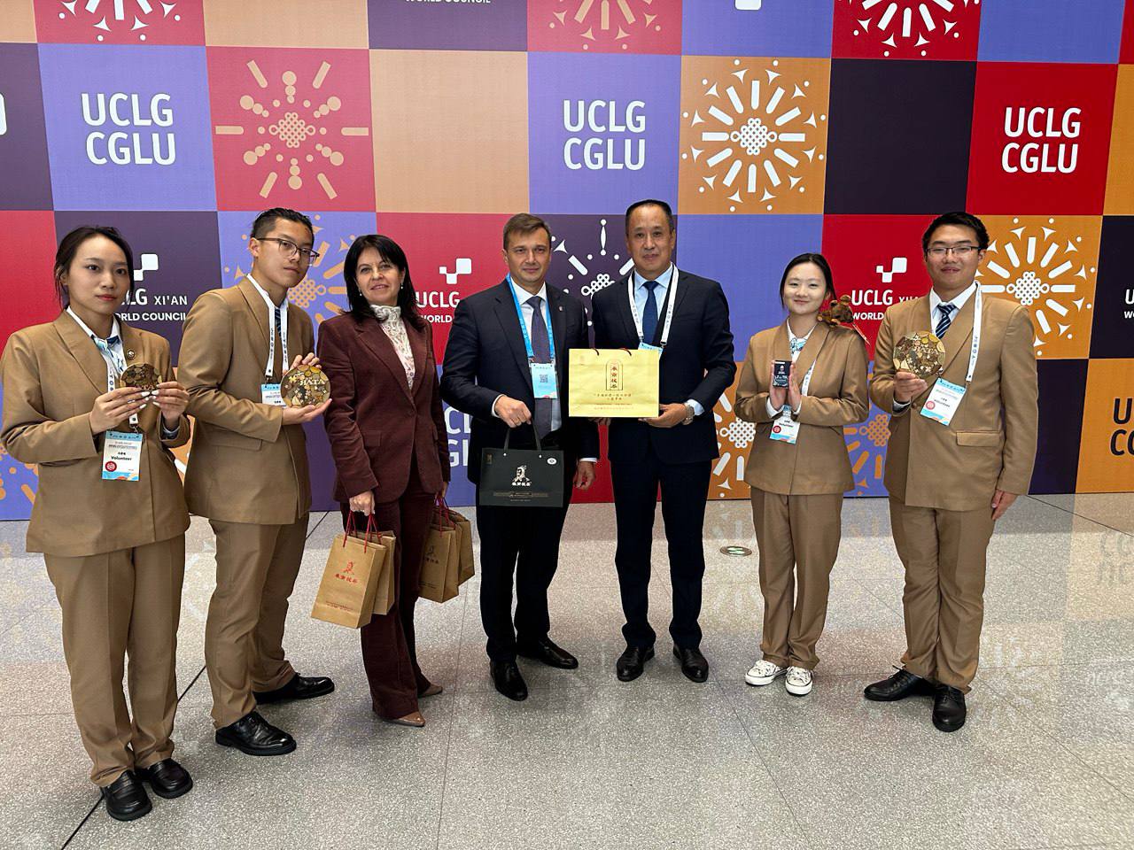 Ребята работали волонтерами на конференции и ярмарке местных производителей. Чтобы немного их поощрить, вручили им крымские сувениры. Студенты были этому очень рады и долго благодарили нас.